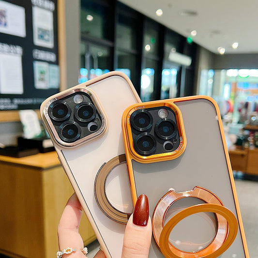 Aluminum Magnetic Stand Phone Case For iPhone 16 15 14 13 12 Pro Max Metal Lens With Bracket Cover For Magsafe Wireless Charger