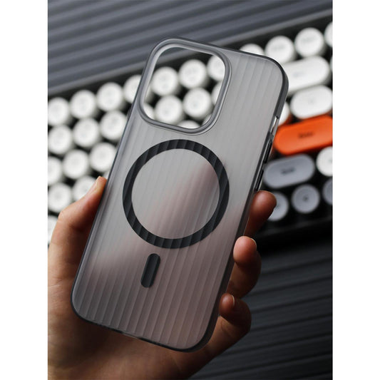 Corrugated Pattern Glacier Matte Magnetic Wireless Charge Case For MagSafe For iPhone 16 15 14 13 Pro Max Transparent Hard PC Cover