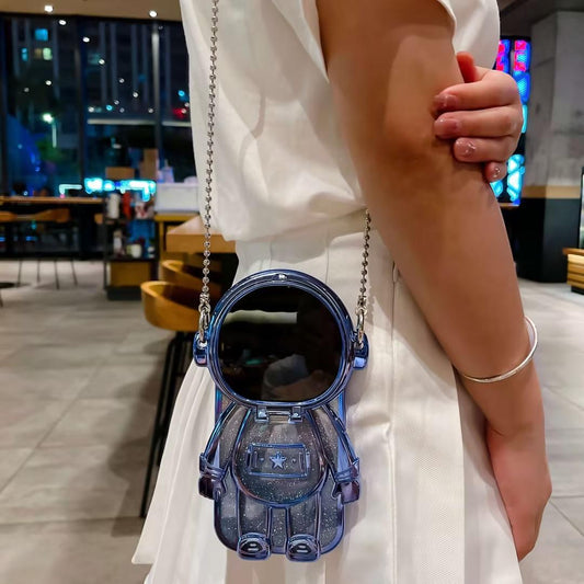 Luxury Glitter Diagonal Hanging Chain Plating Mirror Astronaut Case For iPhone 16 15 14 13 12 Pro Max Fashion Bracket Square Case Back Cover