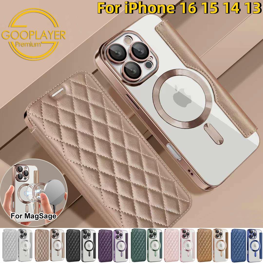 For iPhone 16 15 14 13 Pro Max Phone Case, Luxury Magnetic Suction Flip Business Wallet Card Slot Leather for Magsafe With Lens Film Anti-Fall Full Cover