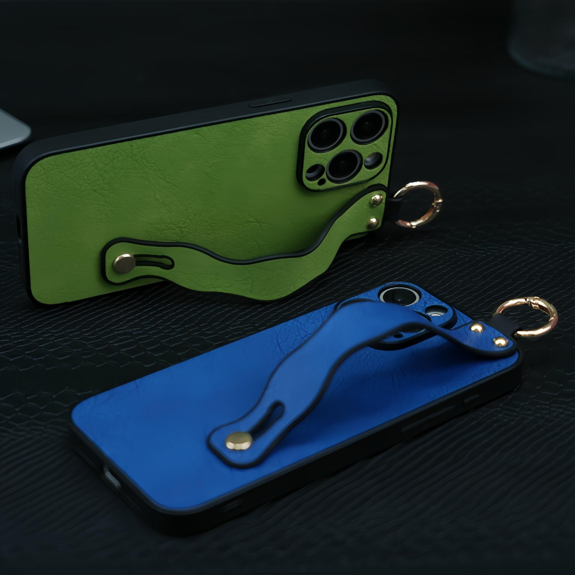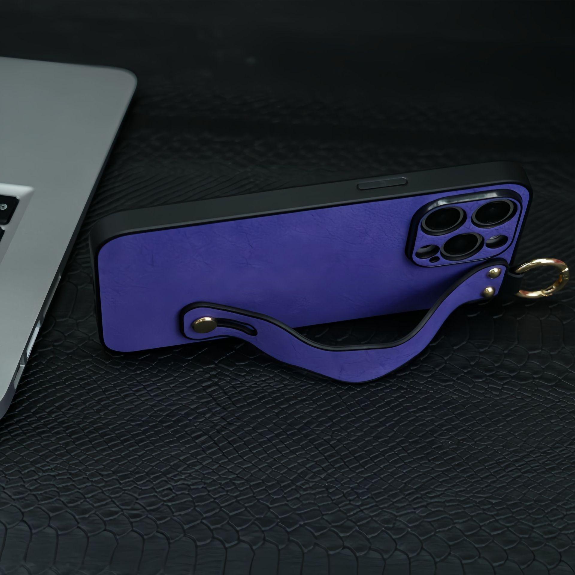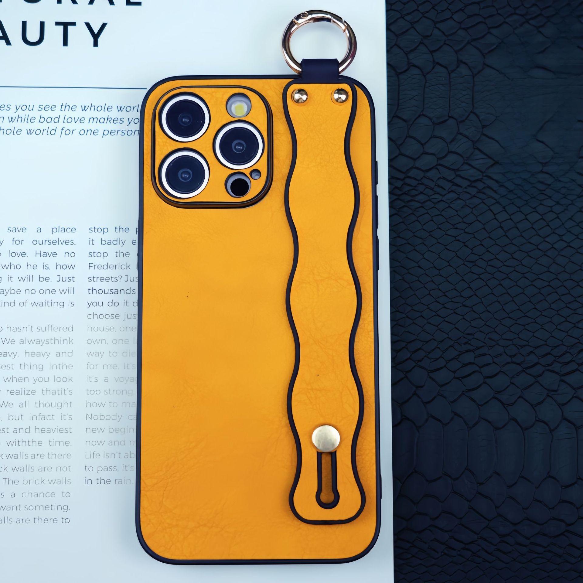 For iPhone 16ProMax 16 15 14 13 12 Case With Wave Wristband, Luxury Durable Faux Leather Kickstand Shockproof Phone Case