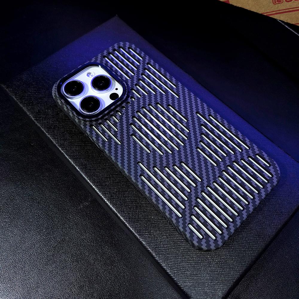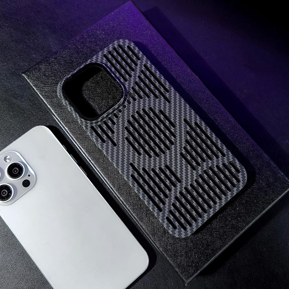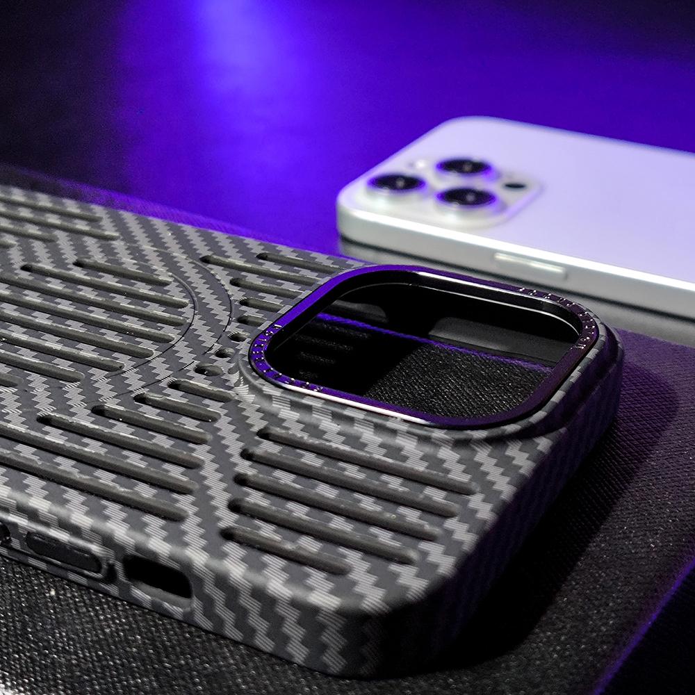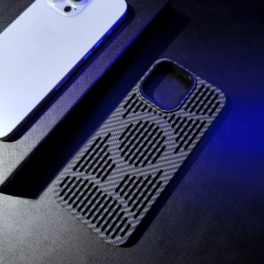 For iPhone 16ProMax 16 15 14 13 12 Plus Pro Max Phone Case, Hollow Out Carbon Fiber Matte Cooling Magnetic PC Ultra Light, Heat Dissipation Metal Lens Protection Soft Full Cover