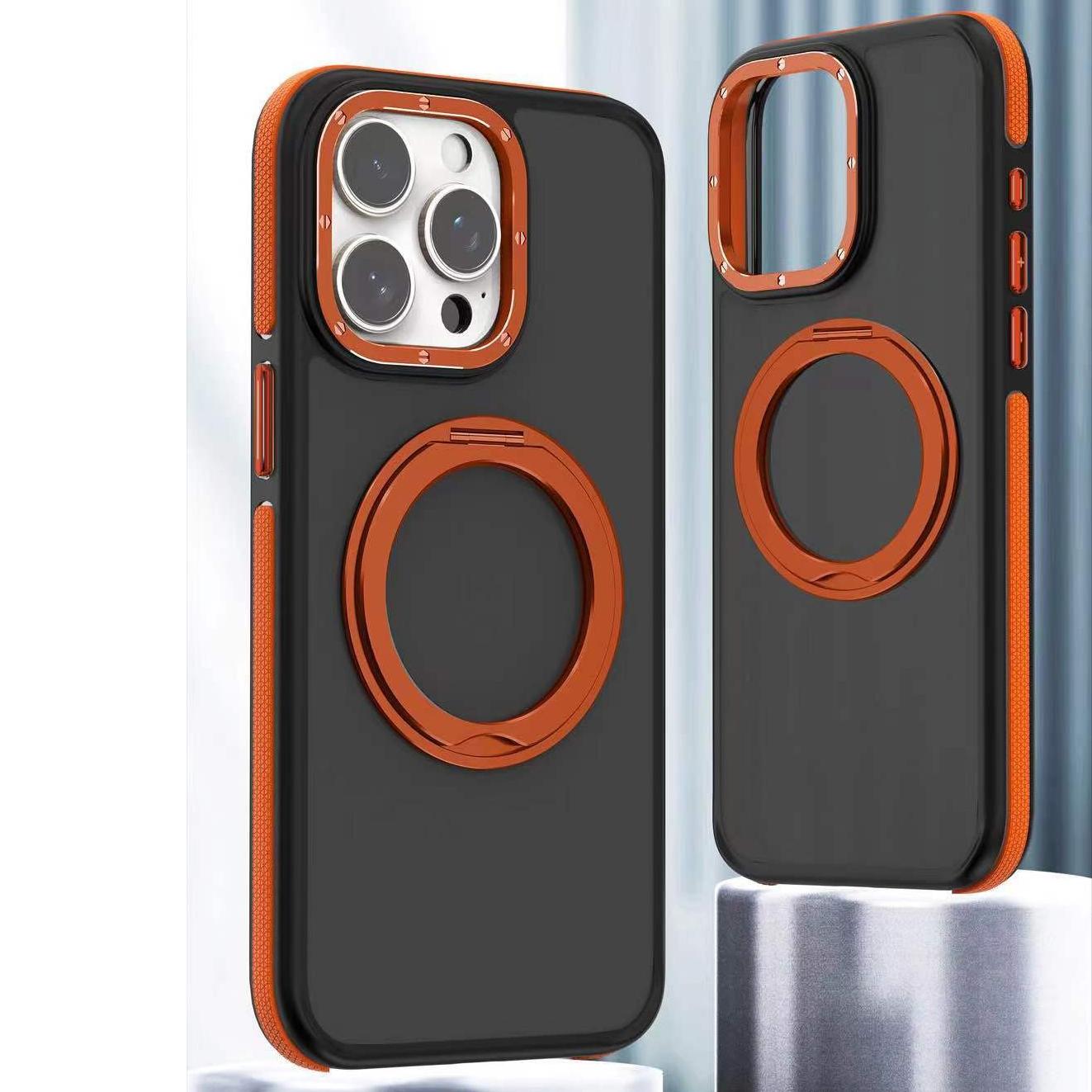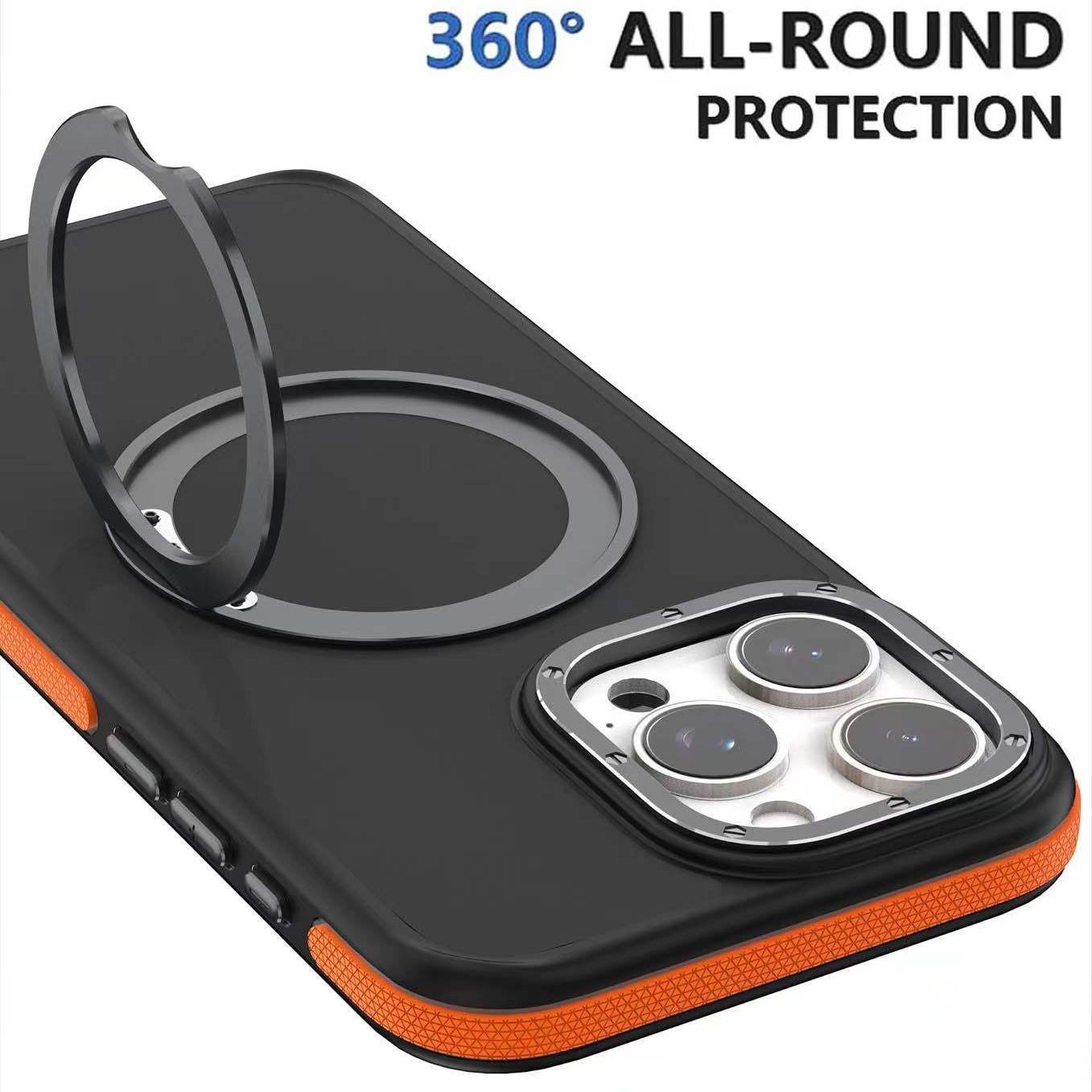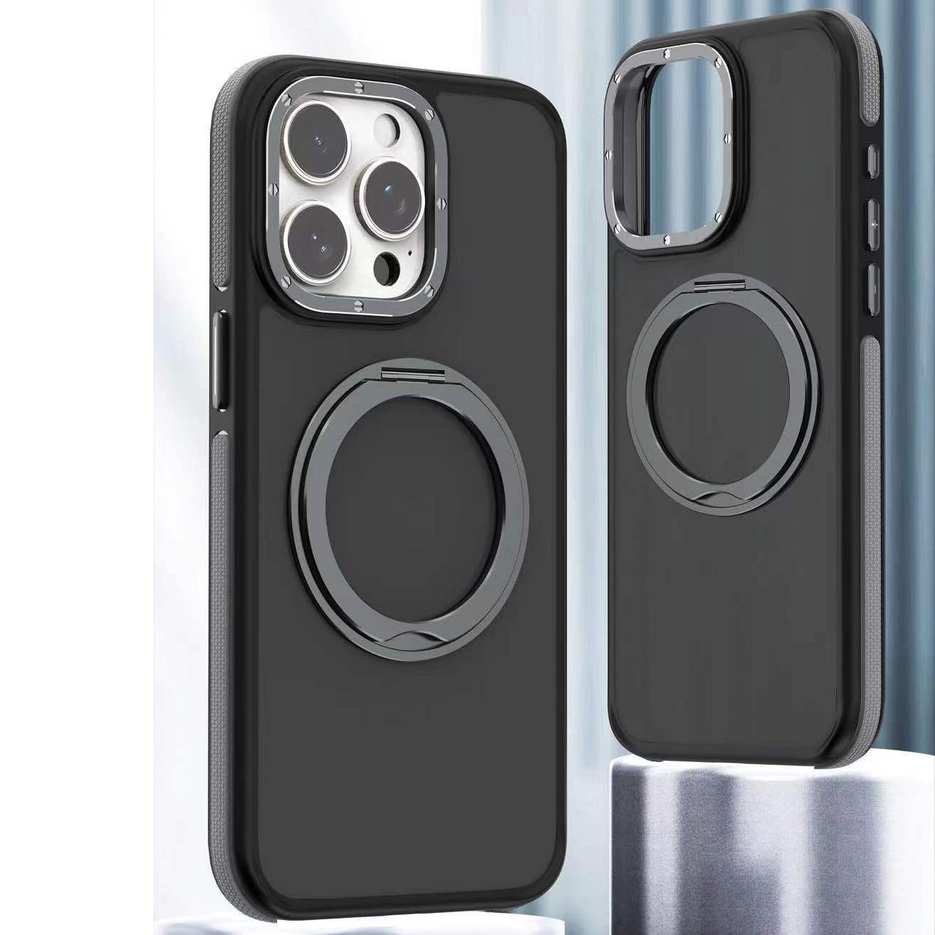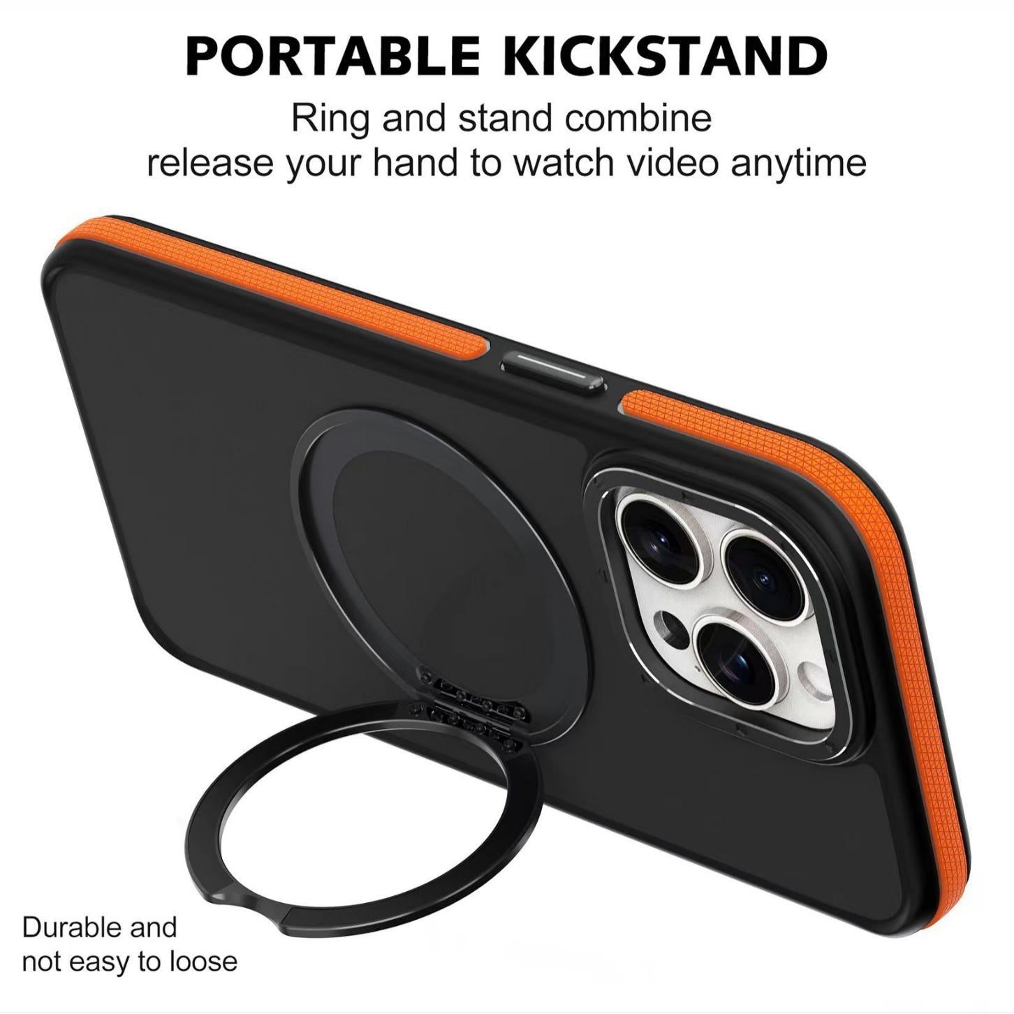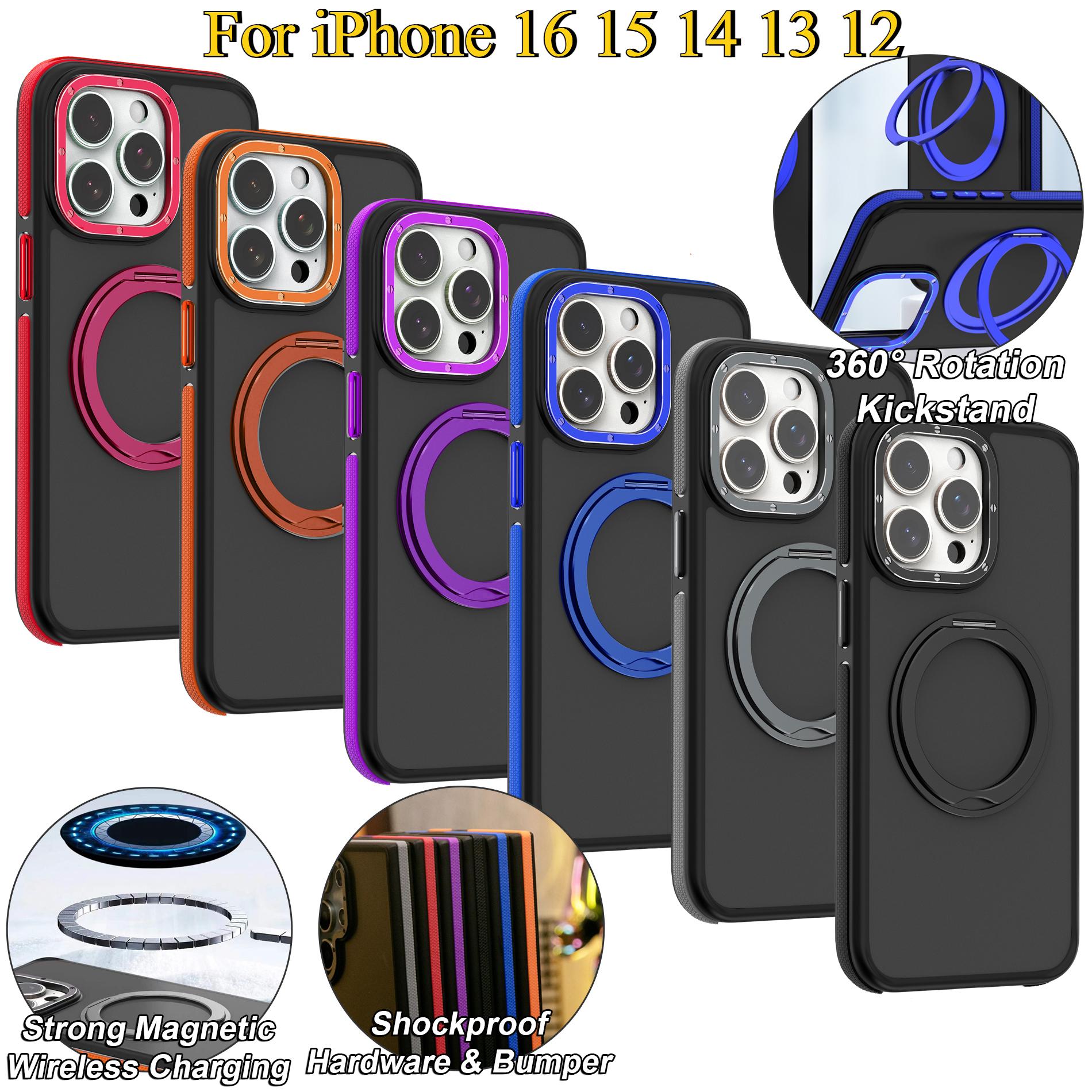 For iPhone 16ProMax 16 15 14 13 12 Strong Magnetic Phone Case, Metal 360 Degree Rotation Kickstand Protection, Elegant Matte Case Support Wireless Charging Shockproof Bumper Hard Full Cover