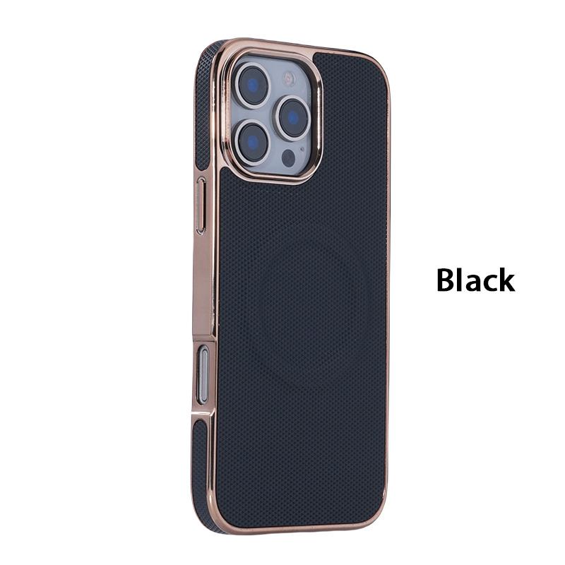 For iPhone 16ProMax 16E 16 15 14 13 12 11 Pro Max Plus Phone Case, Plating Antislip Matte Luxury Leather Emboss Strong Magnetic Slim Protection Shockproof Hard Full Cover