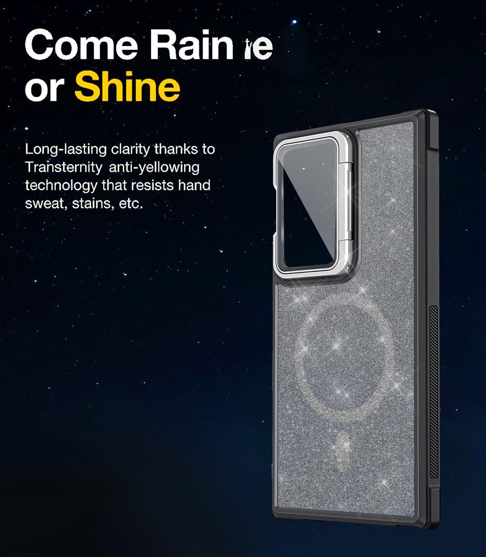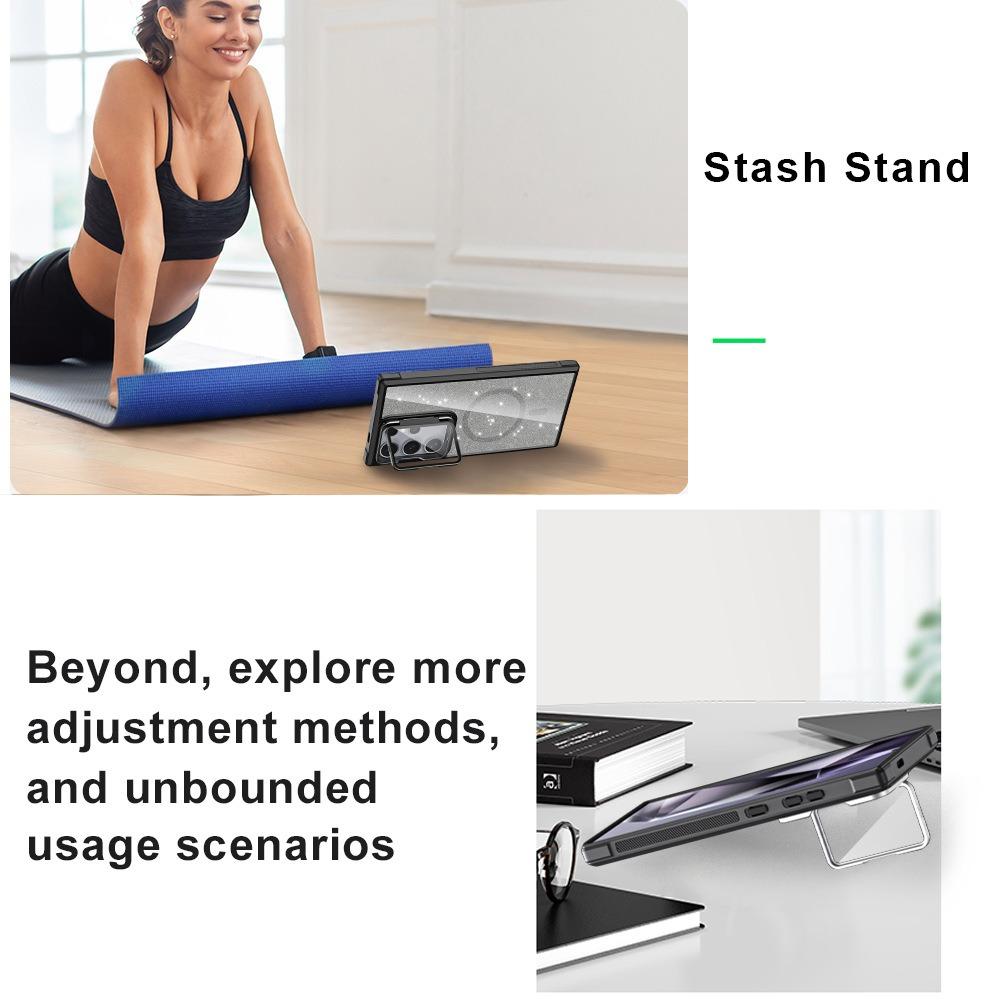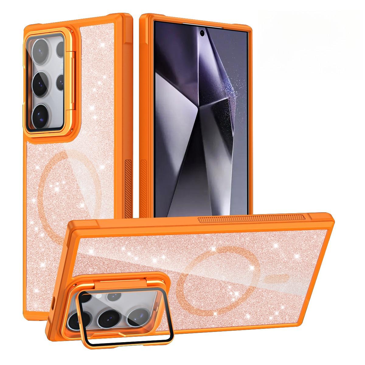 For Samsung S25Ultra S25 S24 S23 S21FE S20FE Strong Magnetic Phone Case, Glass Camera Kickstand Protection, Glitter Clear Acrylic Four Corner Shockproof Bumper Hand Feel Hard Full Cover