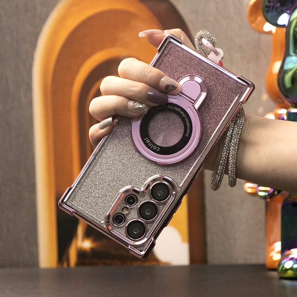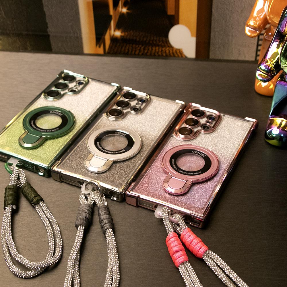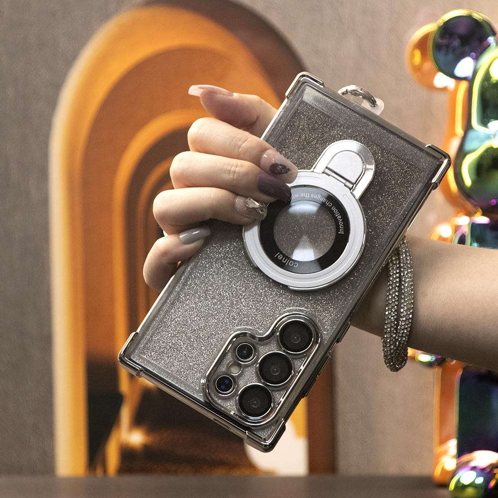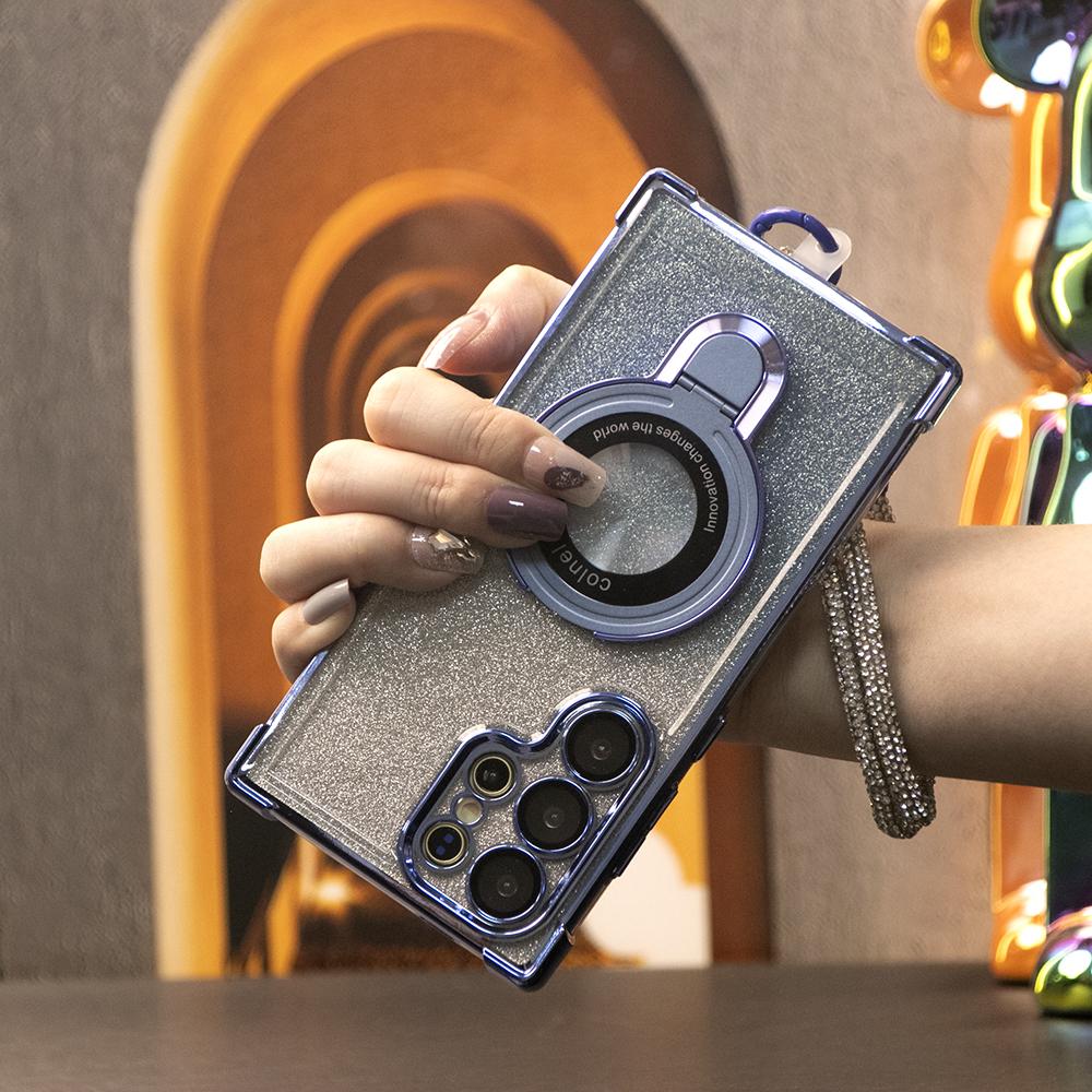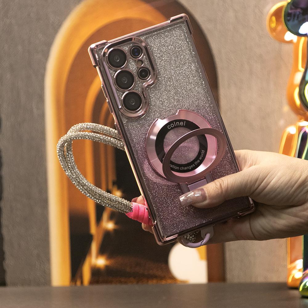 Gradient Plating Four Corners Shockproof Metal Kickstand Case with Woven Diamond Wristband for Samsung S25Ultra S25 S24 S23 S22 A53 A54 A55 Transparent Hard Acrylic Bumper Armor Cover