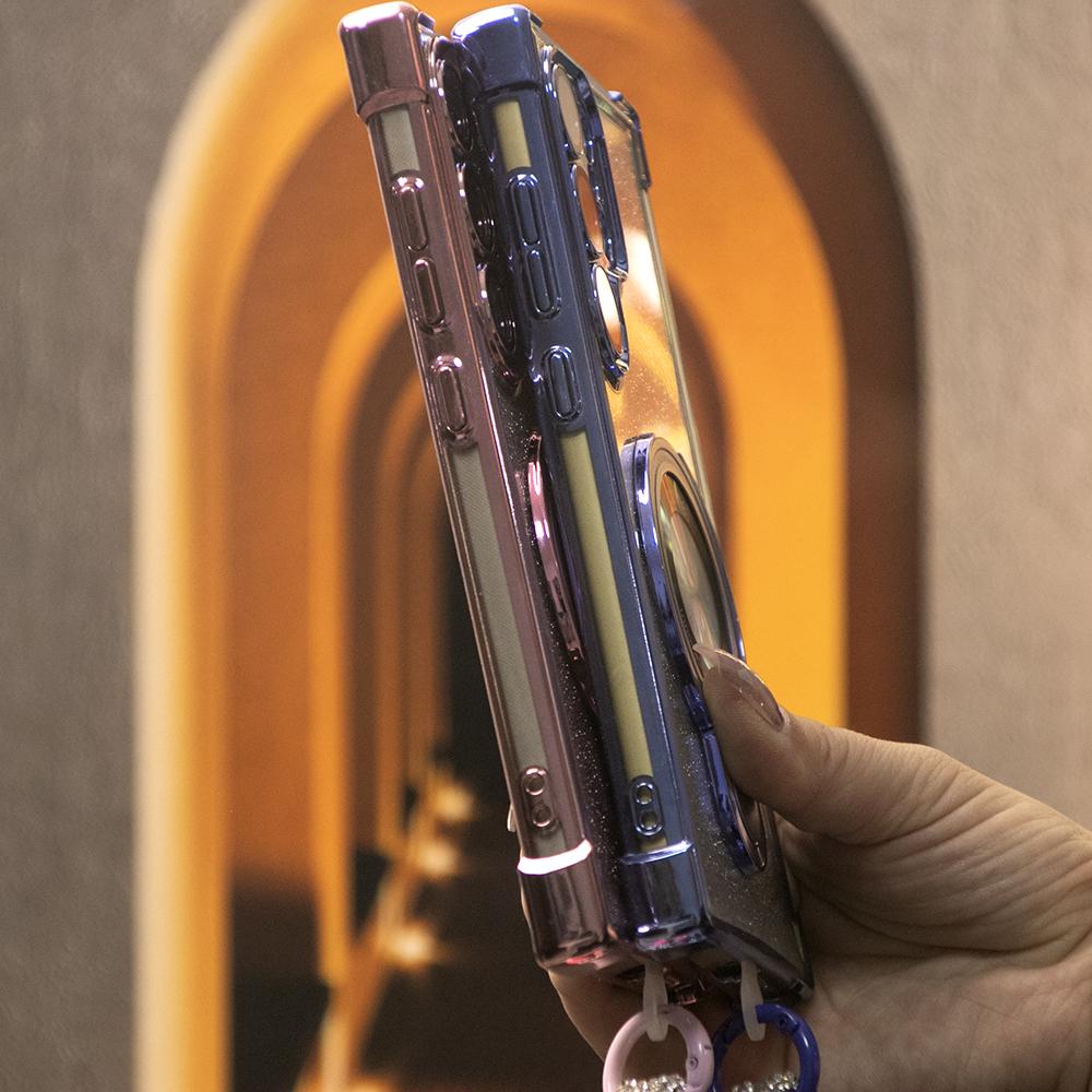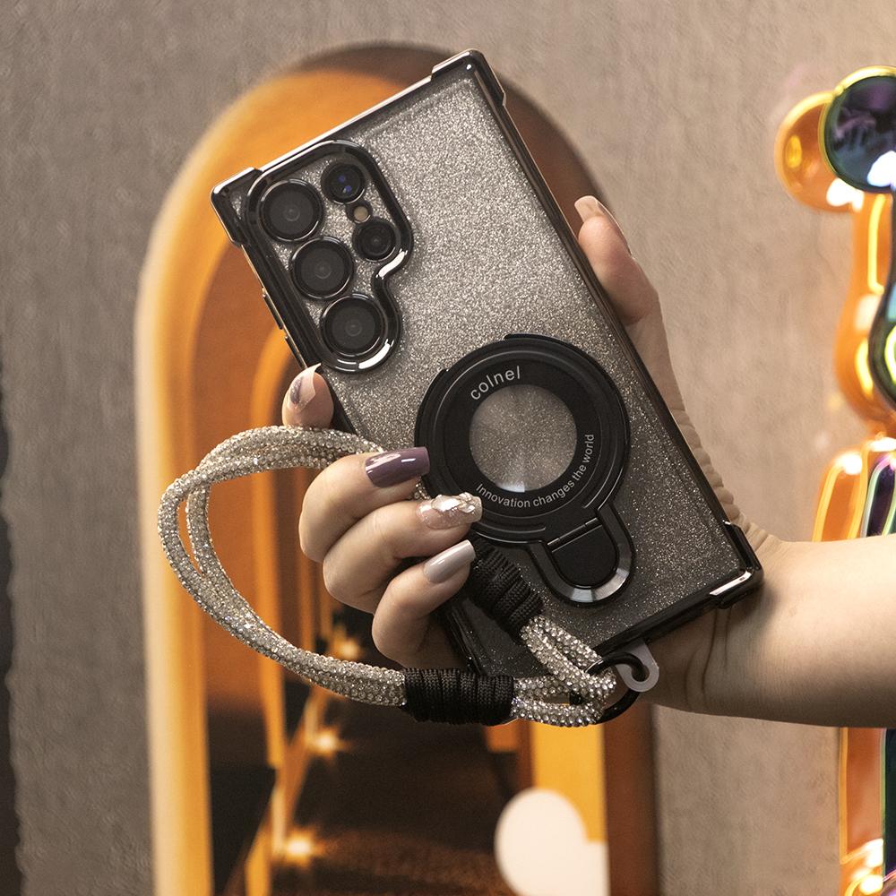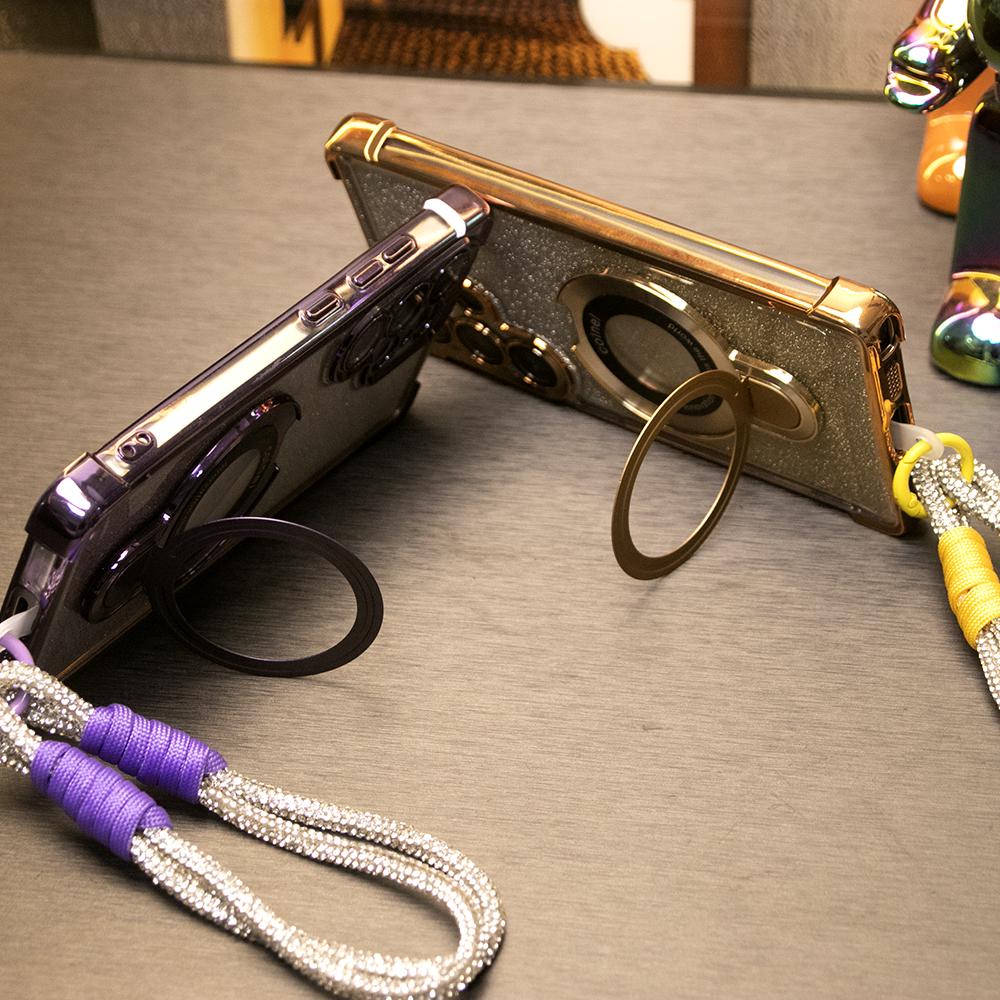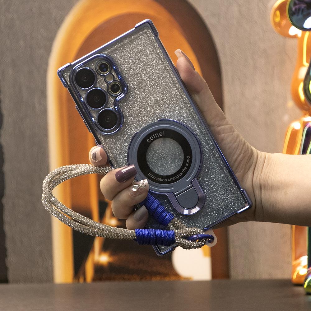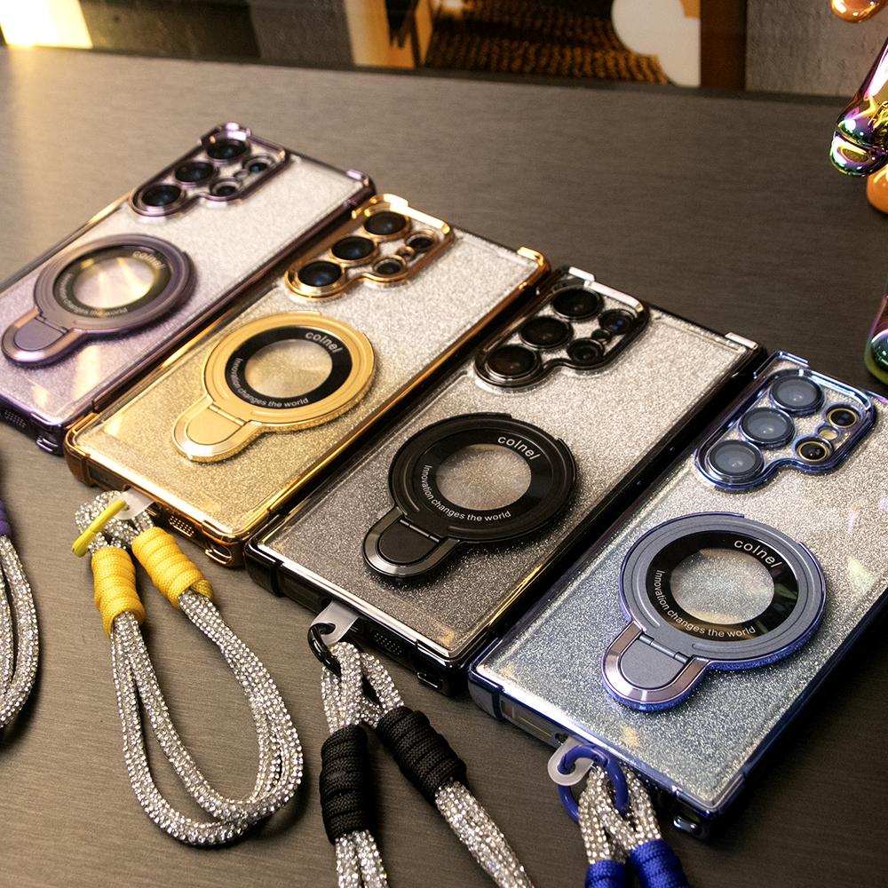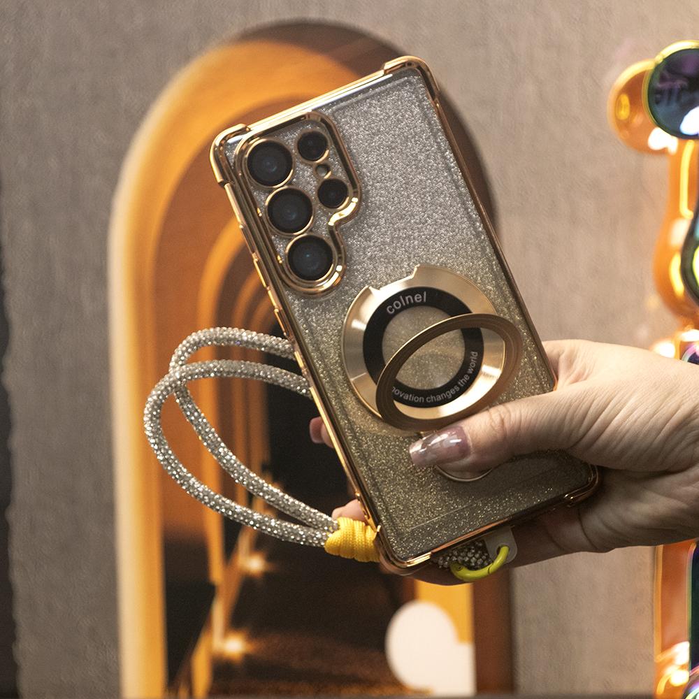 Gradient Plating Four Corners Shockproof Metal Kickstand Case with Woven Diamond Wristband for Samsung S25Ultra S25 S24 S23 S22 A53 A54 A55 Transparent Hard Acrylic Bumper Armor Cover