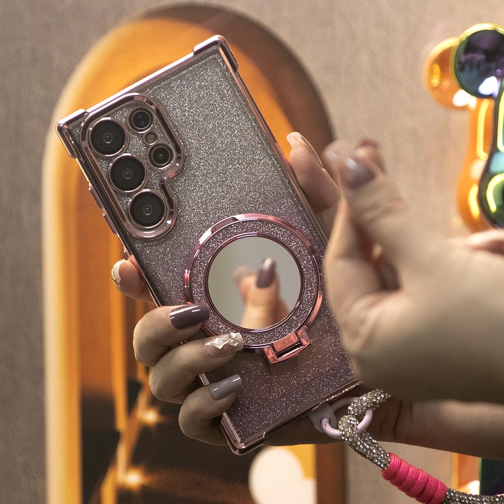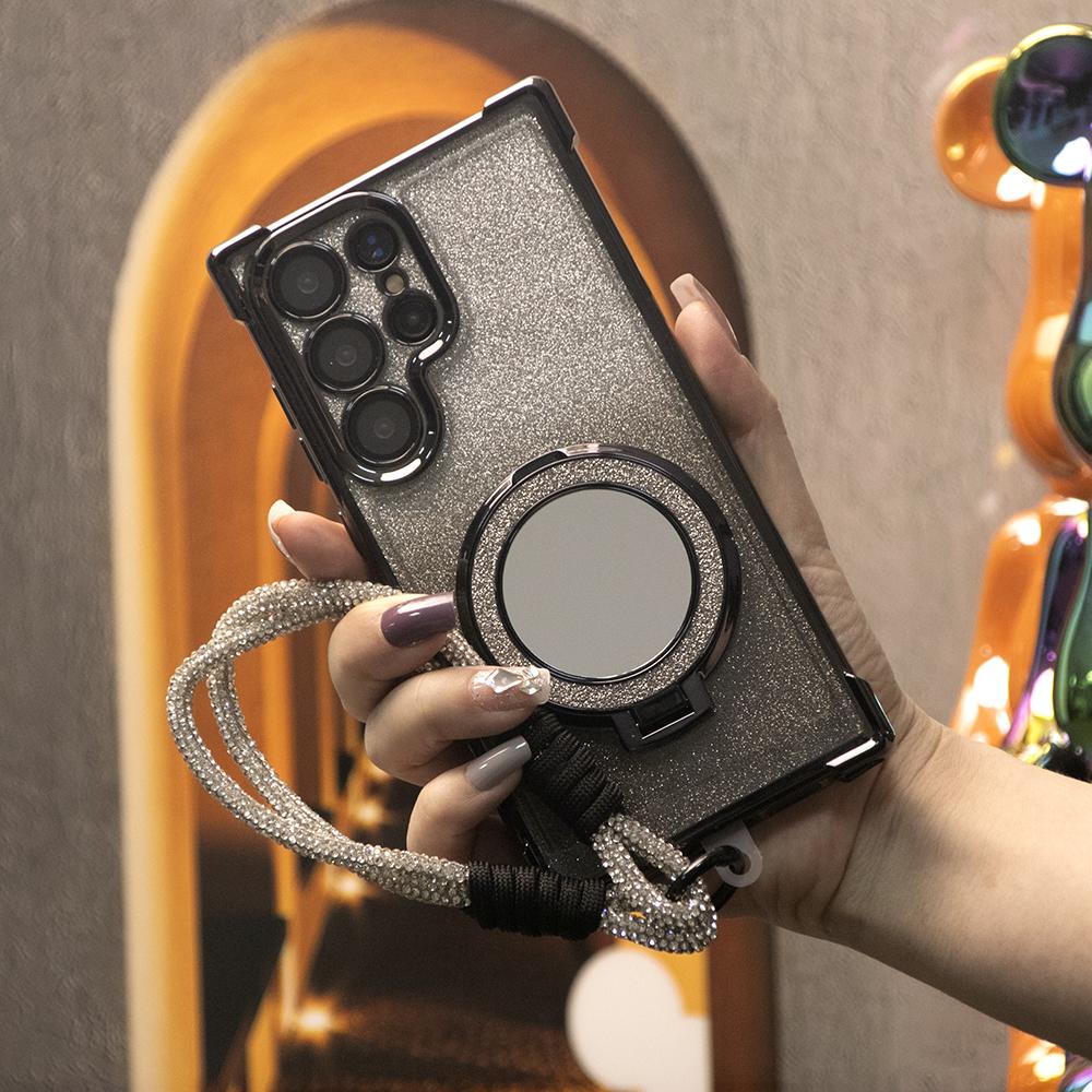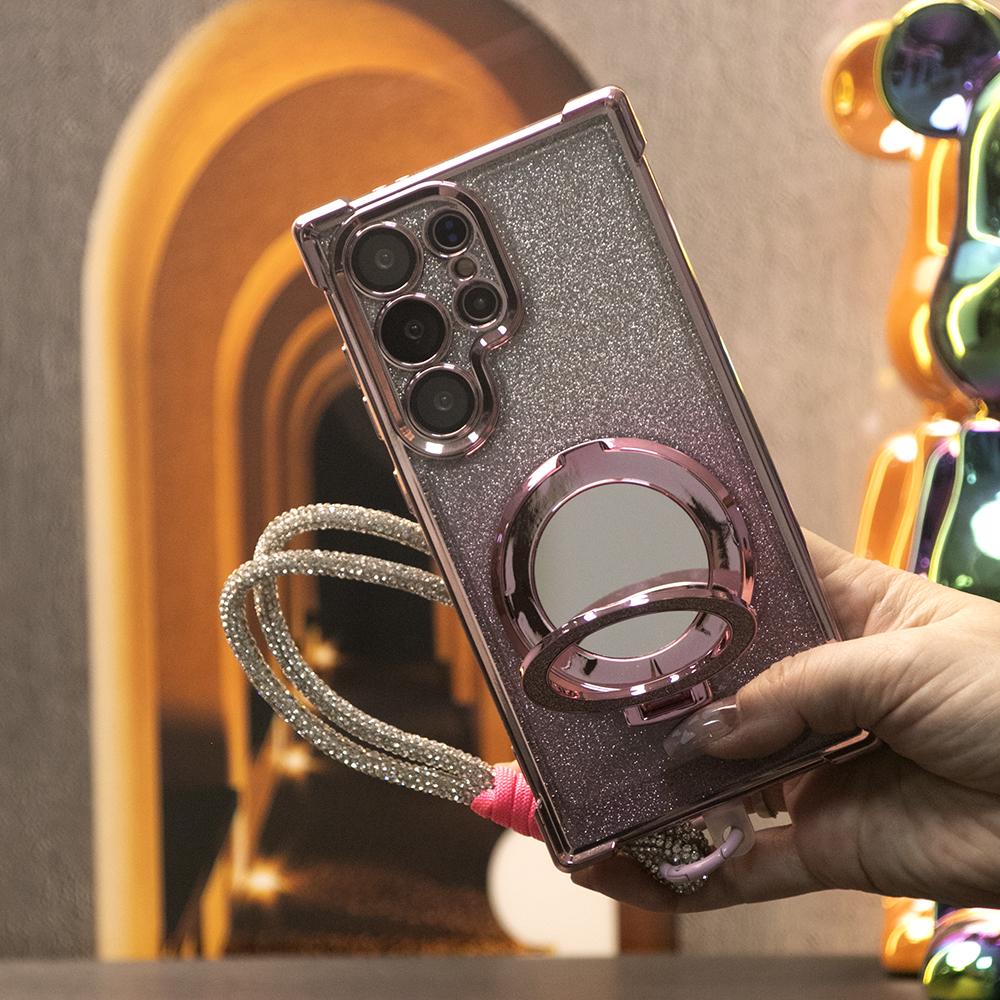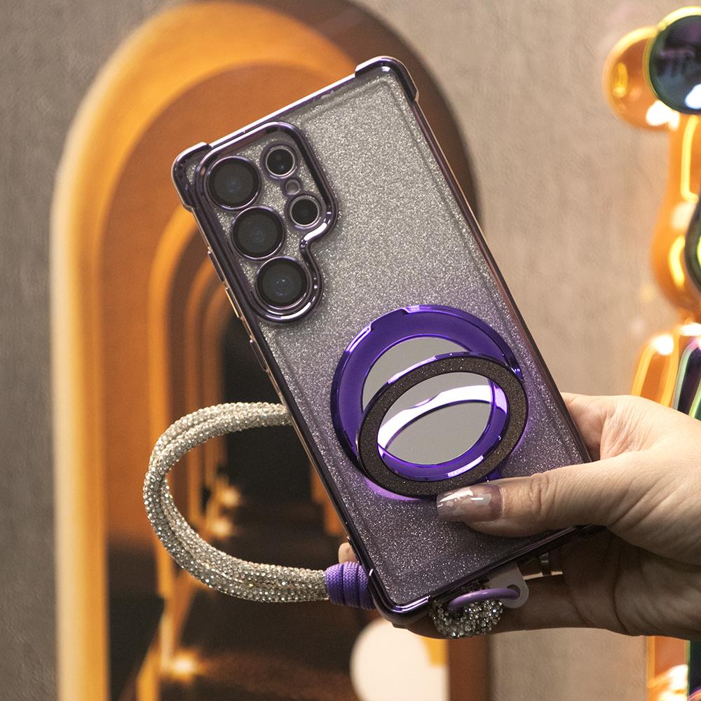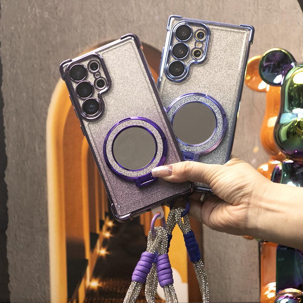 Gradient Plating Four Corners Shockproof Mirror Kickstand Case with Woven Diamond Wristband for Samsung S25Ultra S25 S24 S23 S22 A53 A54 A55 Transparent Hard Acrylic Bumper Armor Cover
