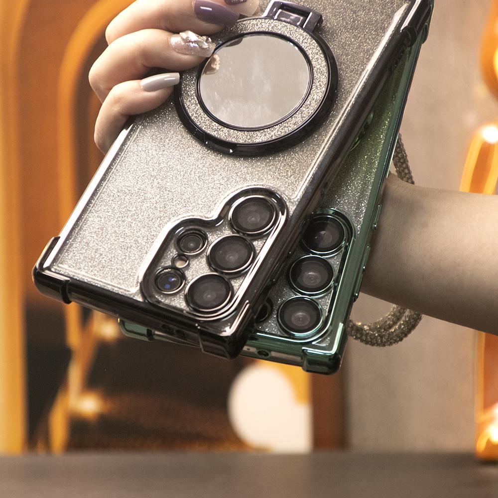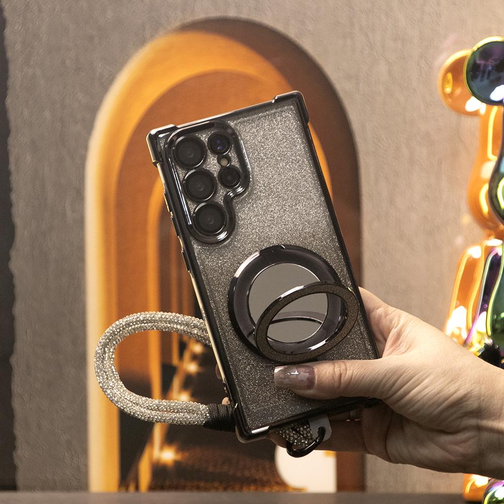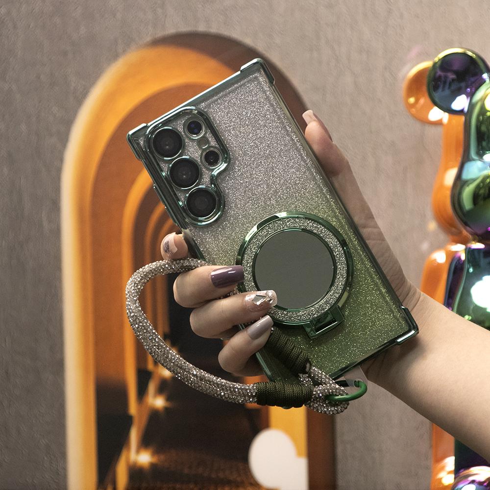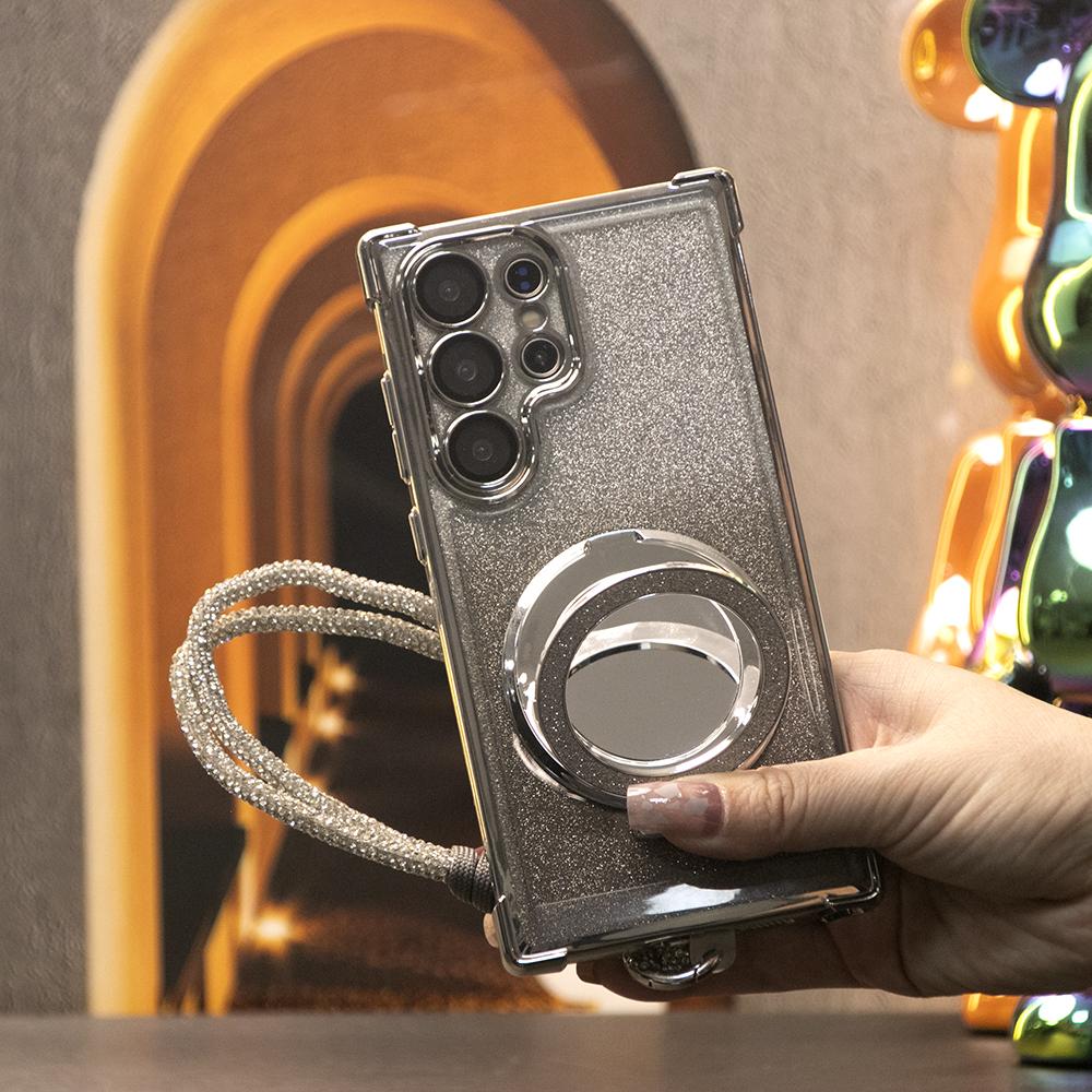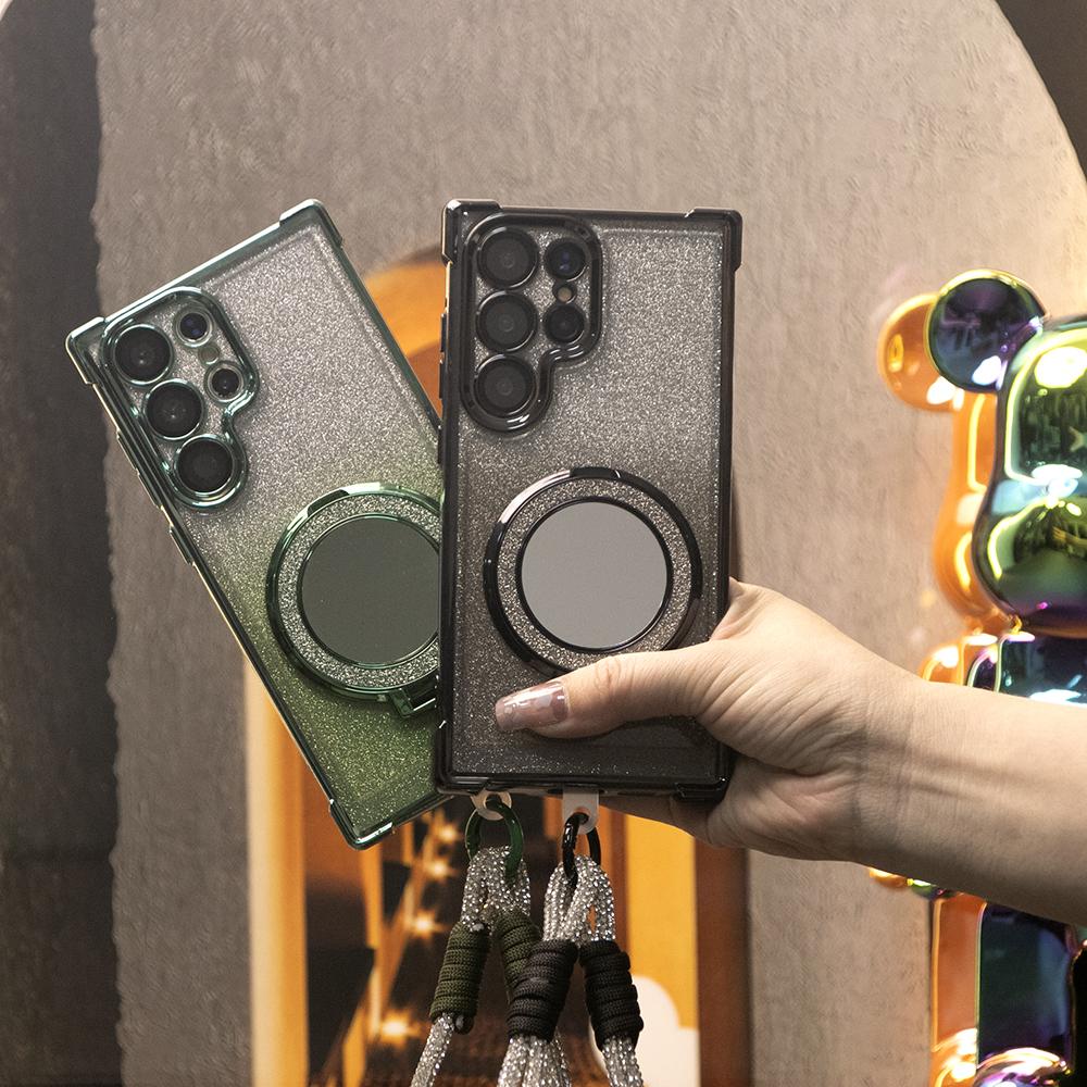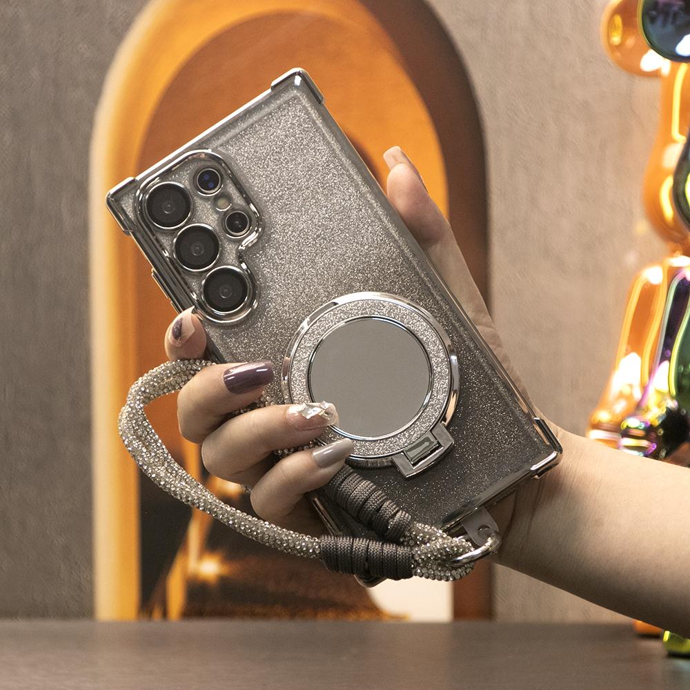 Gradient Plating Four Corners Shockproof Mirror Kickstand Case with Woven Diamond Wristband for Samsung S25Ultra S25 S24 S23 S22 A53 A54 A55 Transparent Hard Acrylic Bumper Armor Cover