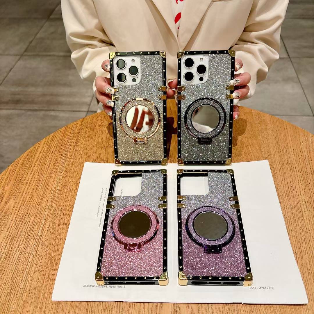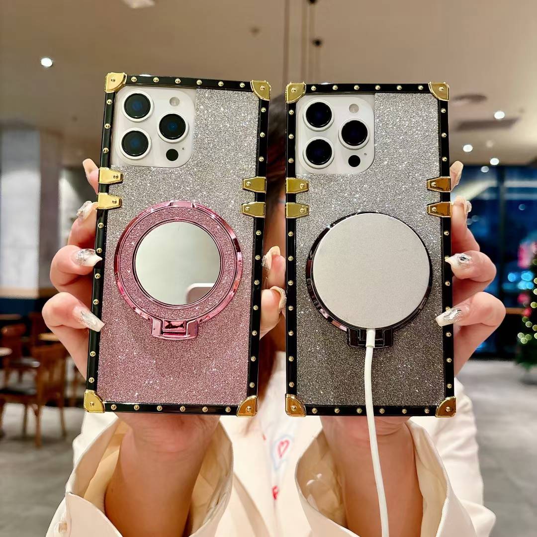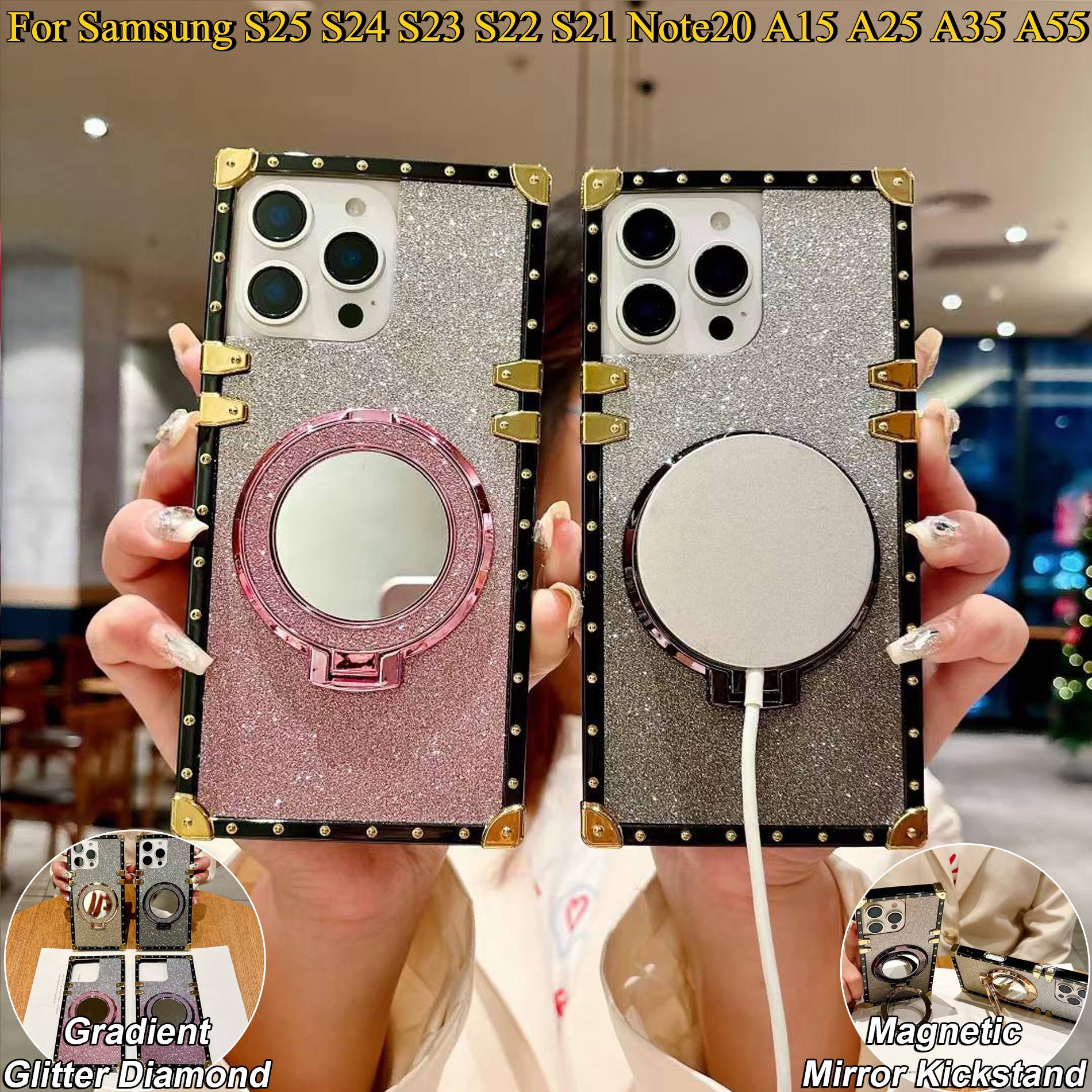 Luxury Gradient Glitter Diamond Heavy Duty Protection Shockproof With Mirror Magnetic Kickstand Phone Case For Samsung S25 S24 S23 S22 S21 Note20 A15 A25 A35 A55 Square Case Back Soft Cover