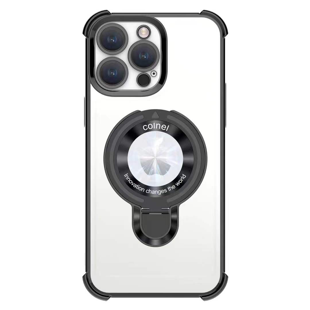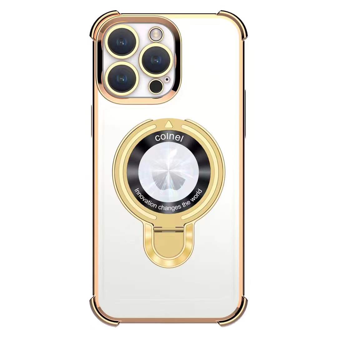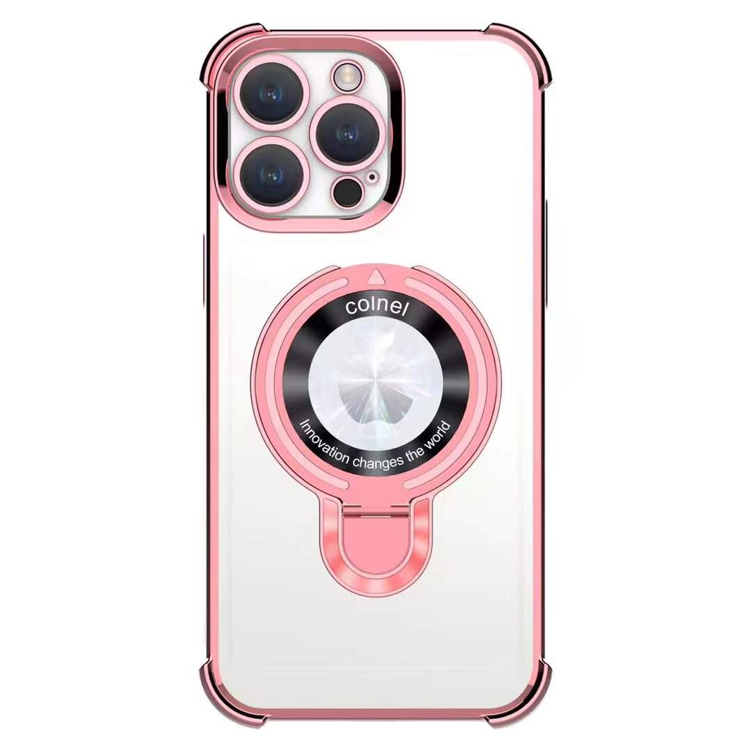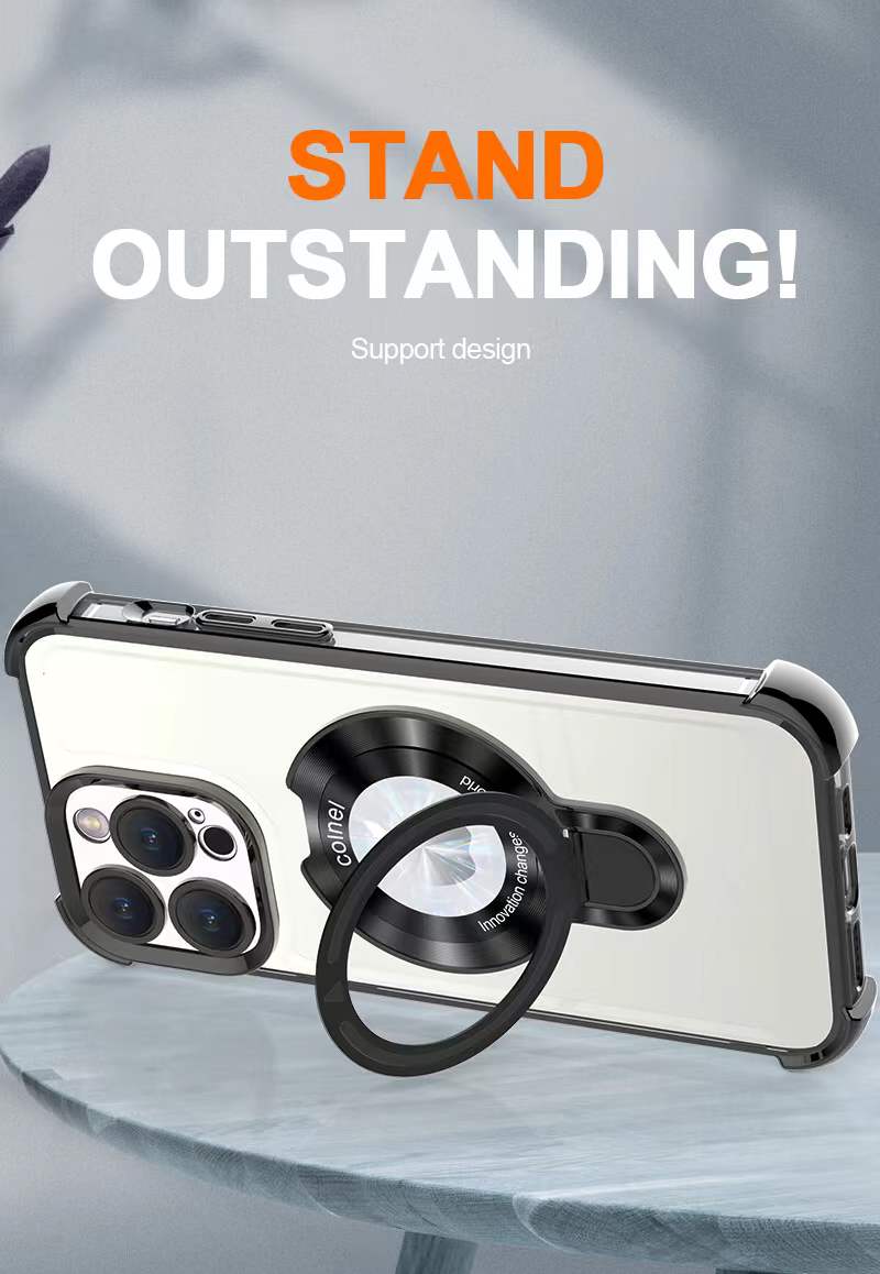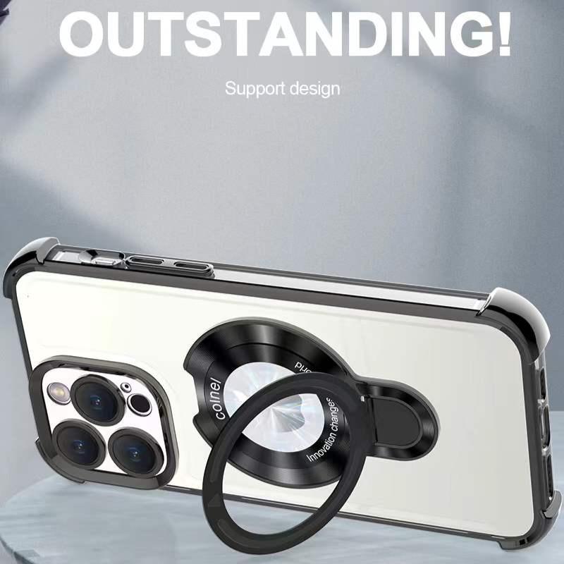 Luxury Plating Four Corners Shockproof Clear Case With Magnetic Stand For iPhone 16 15 14 13 Transparent Hard Acrylic Hybrid Bumper Hard Full Cover