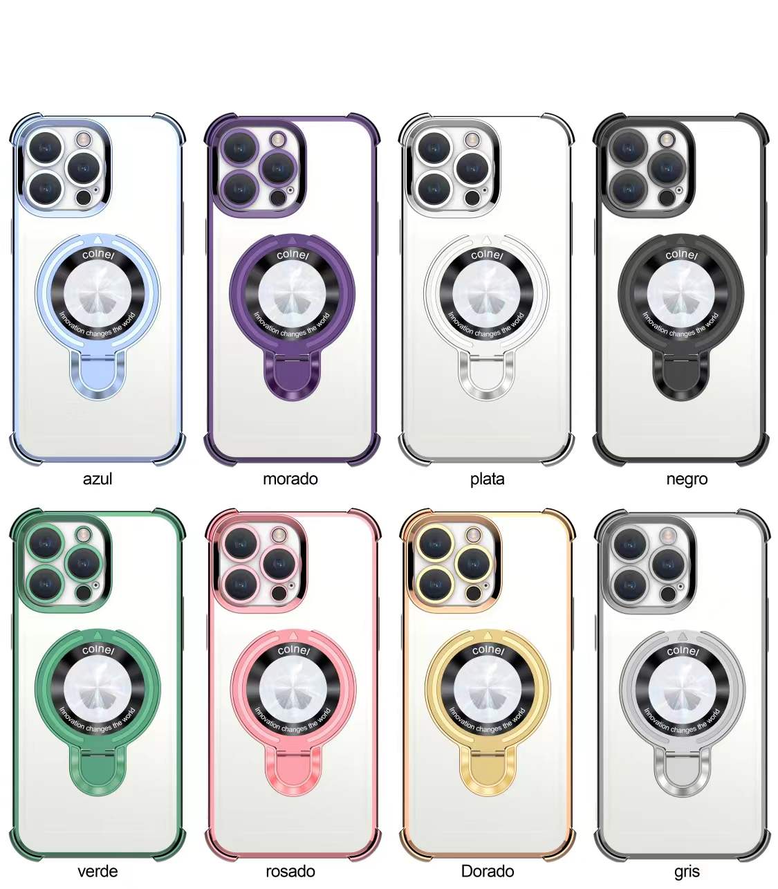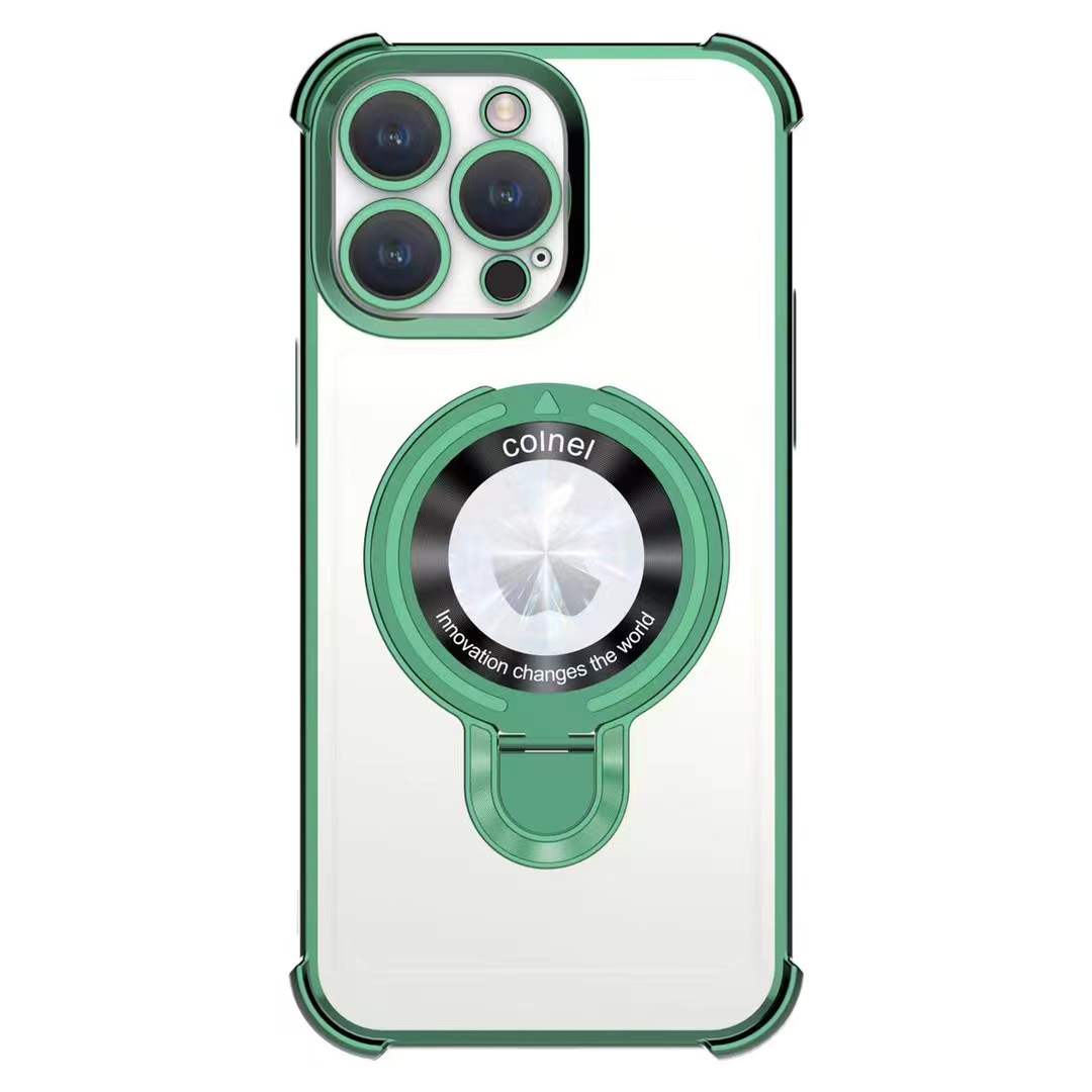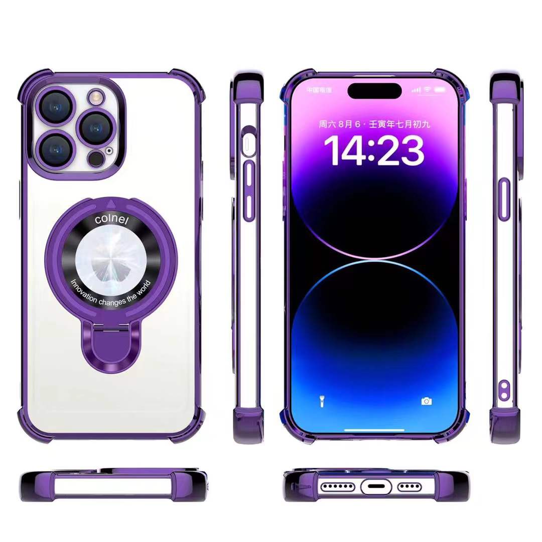 Luxury Plating Four Corners Shockproof Clear Case With Magnetic Stand For iPhone 16 15 14 13 Transparent Hard Acrylic Hybrid Bumper Hard Full Cover
