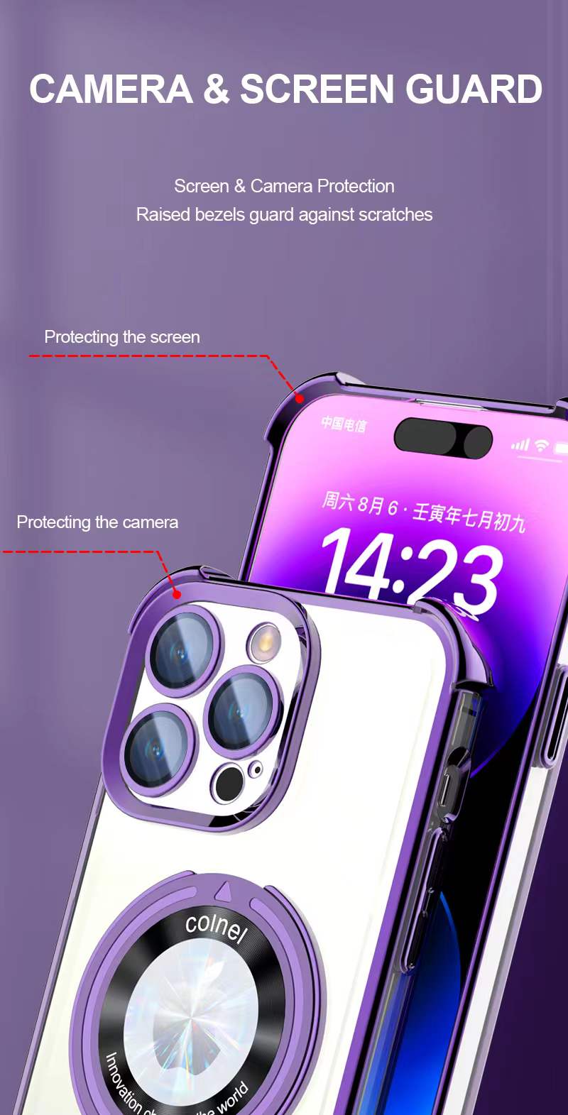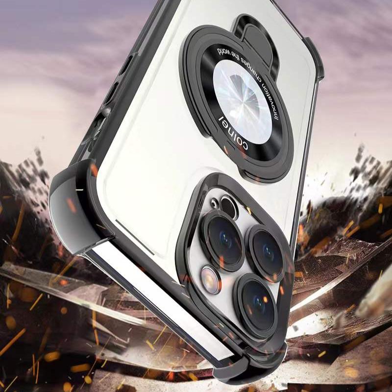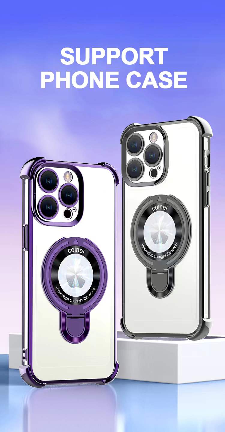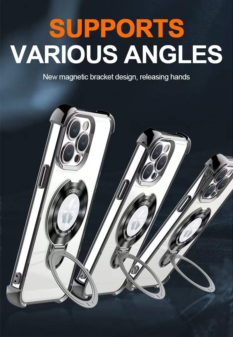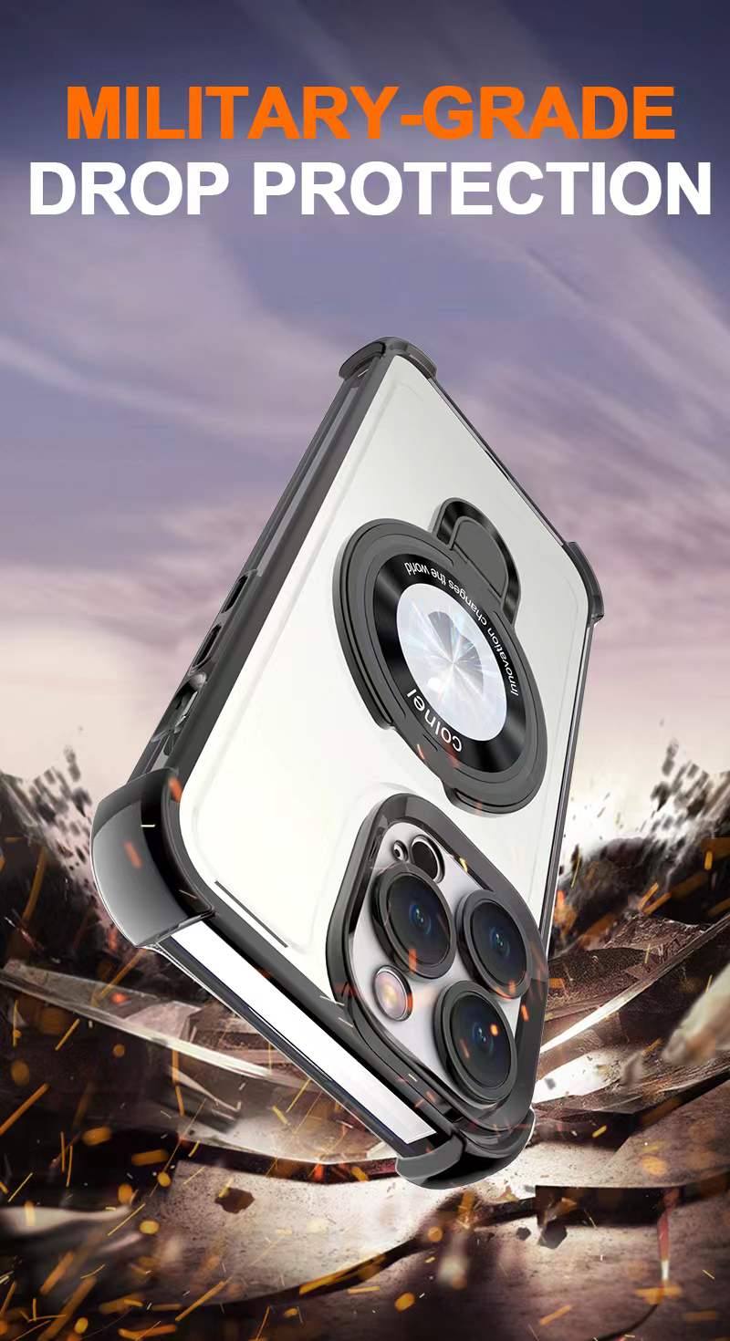 Luxury Plating Four Corners Shockproof Clear Case With Magnetic Stand For iPhone 16 15 14 13 Transparent Hard Acrylic Hybrid Bumper Hard Full Cover