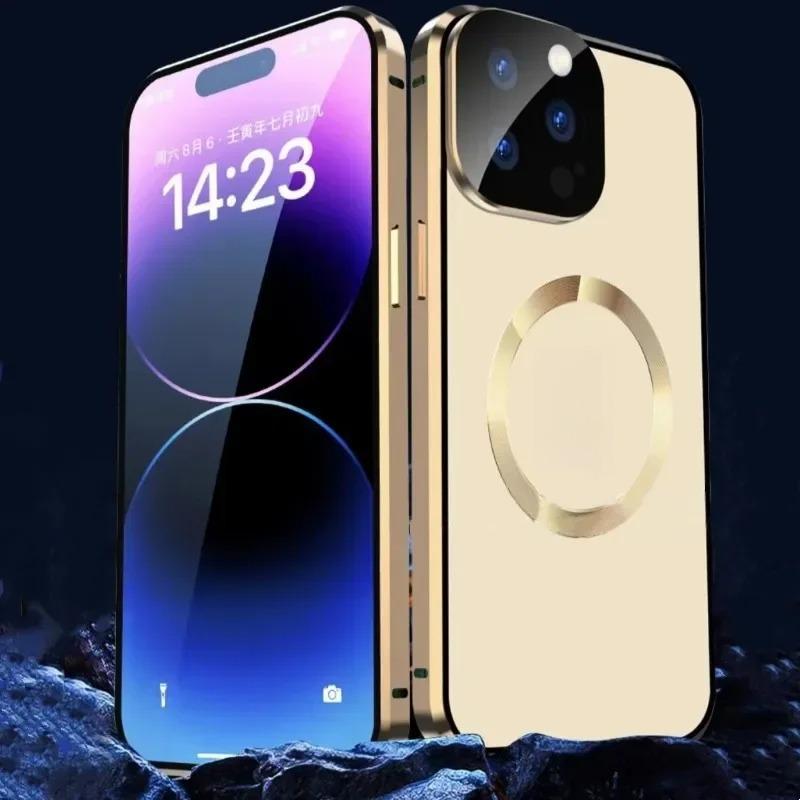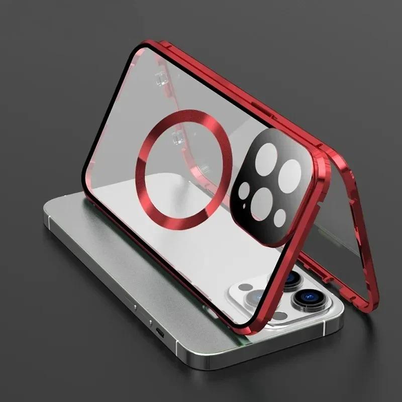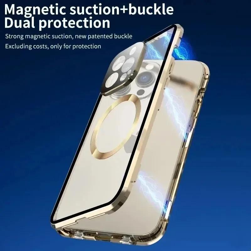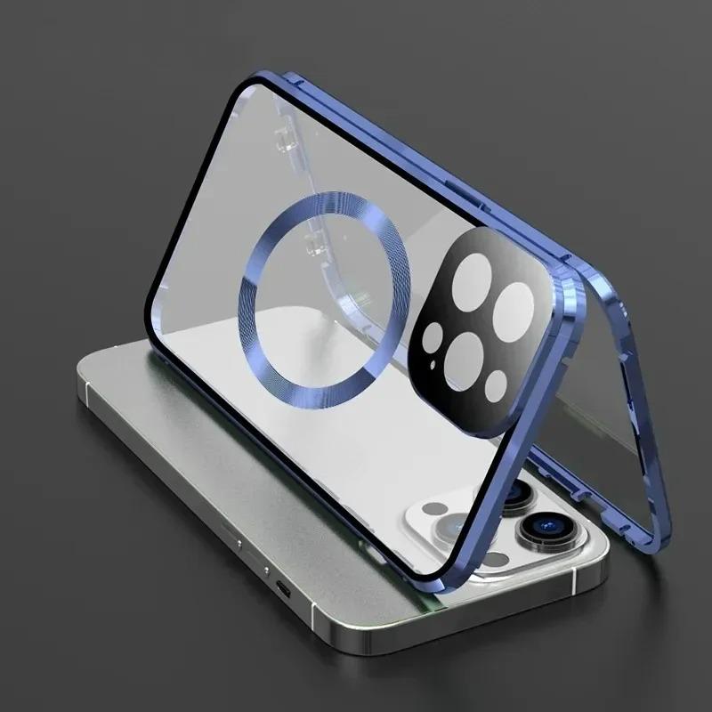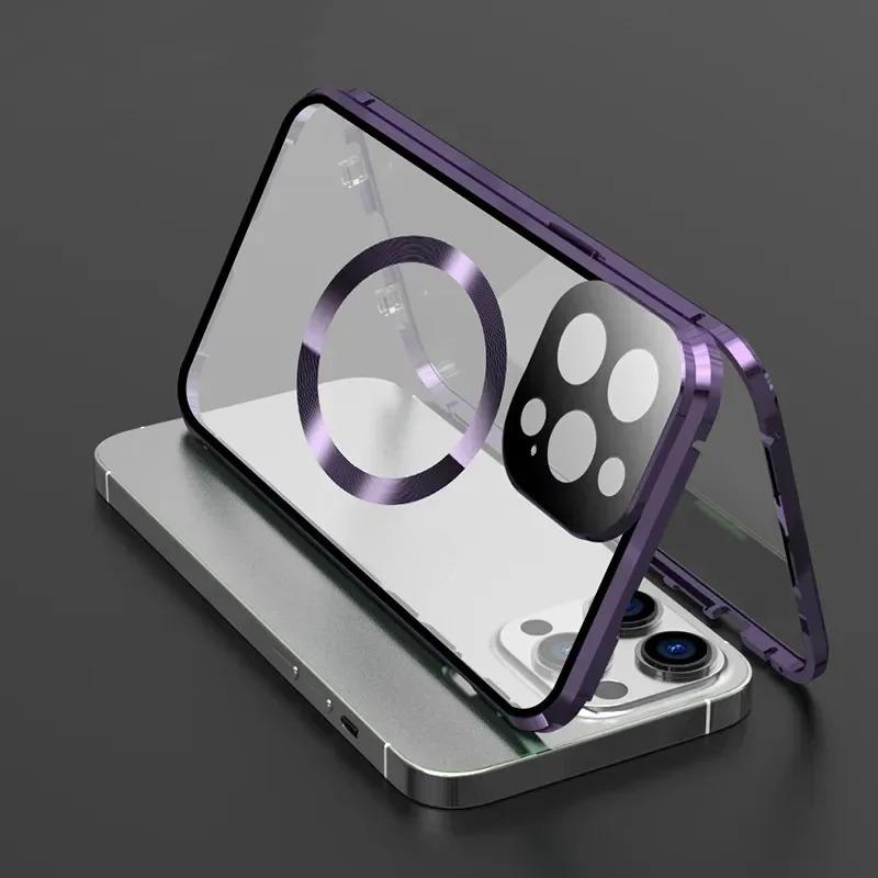 Metal with Tempered Glass Magnetic Ring Double Sided Phone Case For Magsafe For iPhone 16ProMax 16 15 14 13 12 Pro Max Support Wireless Charging With Lens Protective Glass Cover