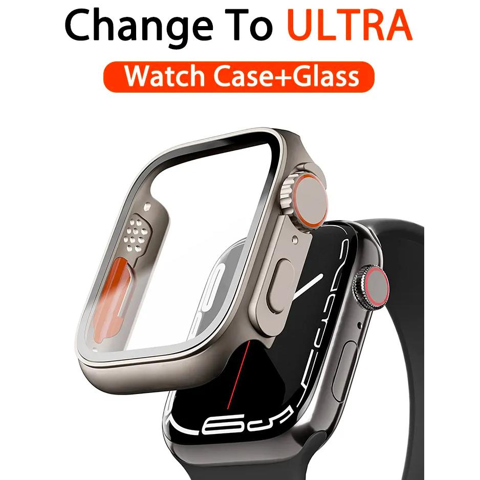 PC Firm Cover for Apple Watch Case 45mm 41mm 44mm 40mm 42mm 38mm Glass Appearance Upgrade ultra iWatch Series 9 8 7 SE SE2 6 5 4
