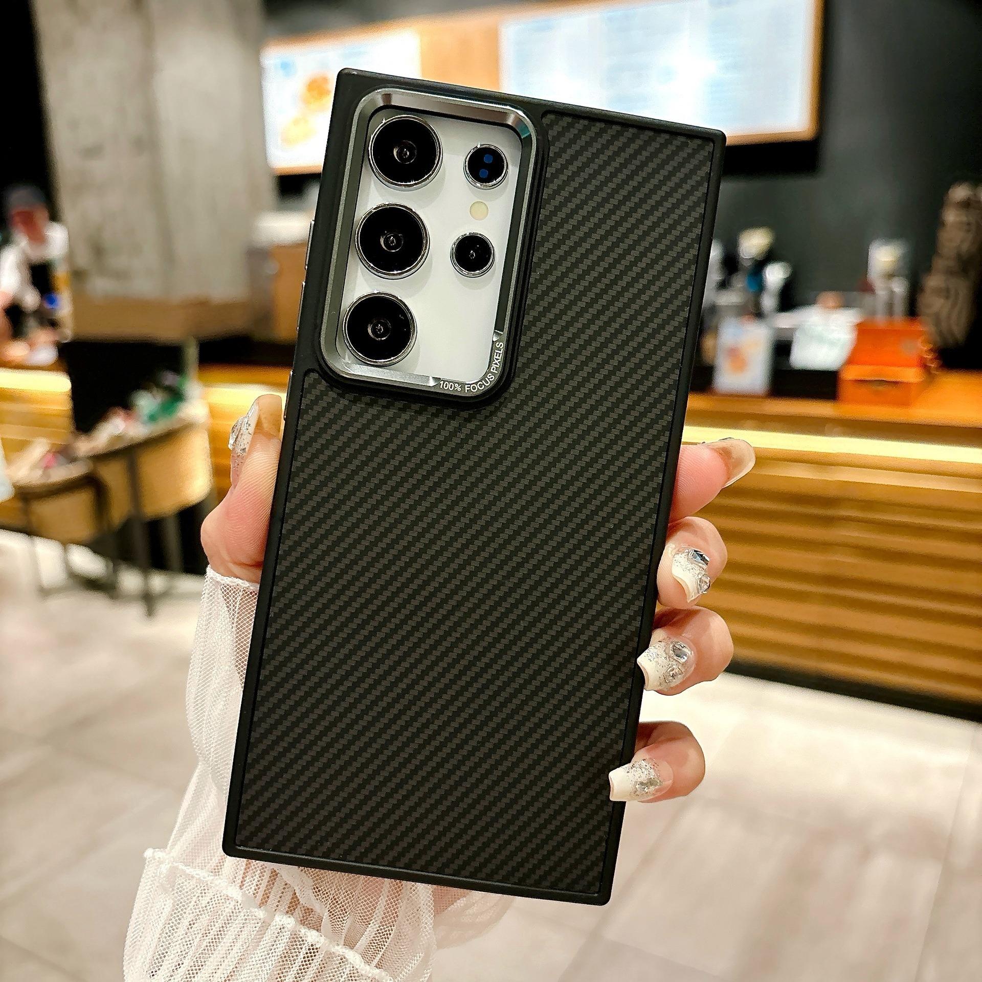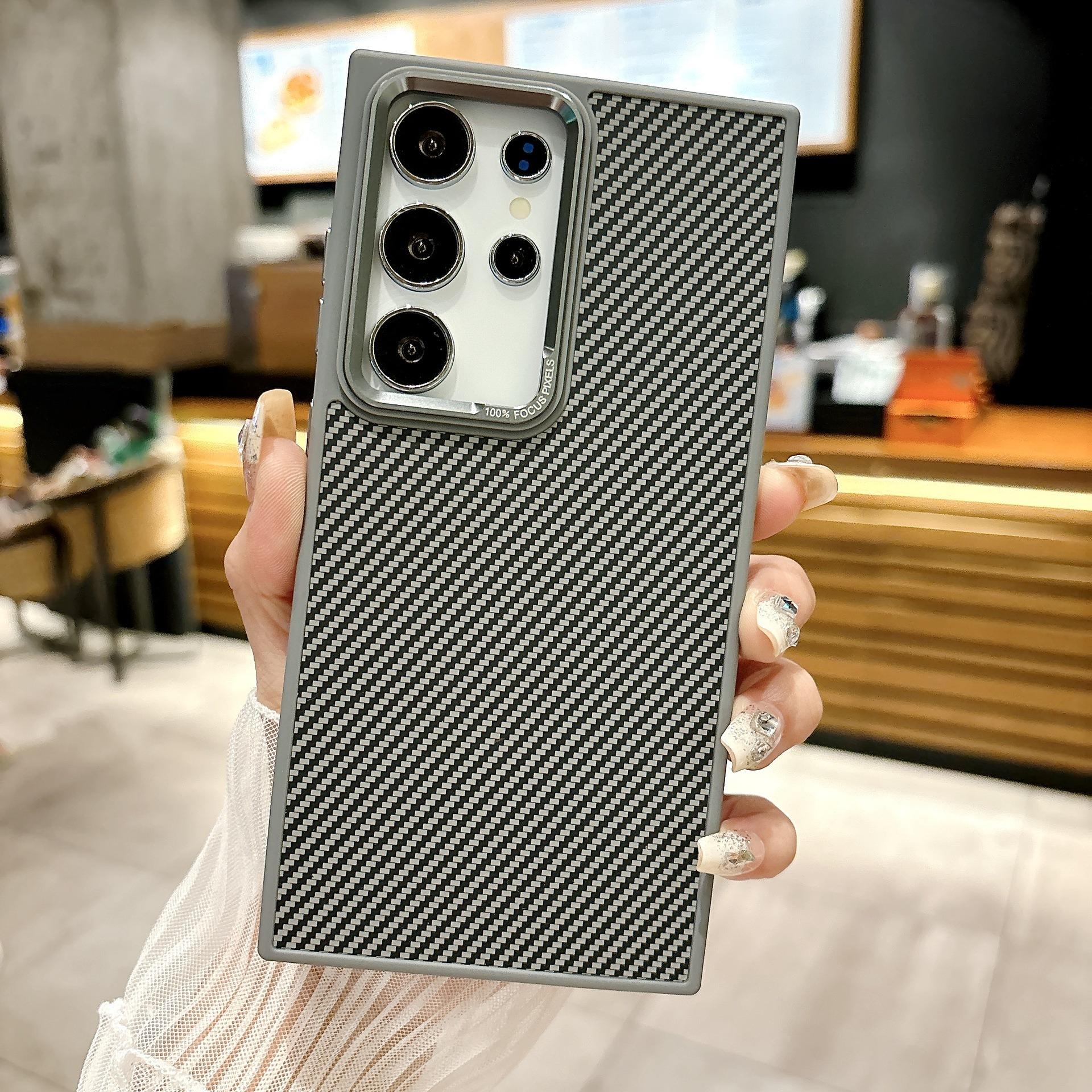 Strong Magnetic Carbon Fiber Pattern Metal Len Hardware Phone Case, Camera Lens Protection PC Hard Cover, Shockproof Anti-Fall For Samsung S25+ S25 S24Ultra S24+ S24 Full Cover