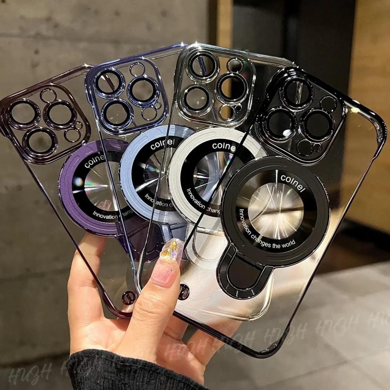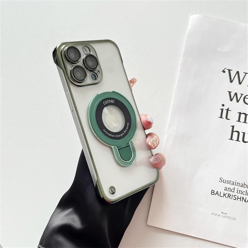 Ultra Slim Frameless Plating PC with Len Protector Phone Case with Metal Kickstand For iPhone 16ProMax 15 14 13 12 Shockproof Support Wireless Charging Hard Full Cover