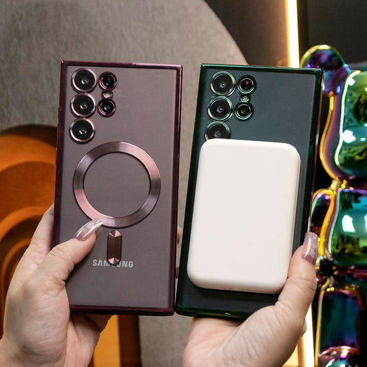 Plating Magnetic Wireless Charge Transparent Soft Phone Case For Samsung S22 S22Ultra S23 S23Plus S23Ultra S24 S24FE S24Ultra