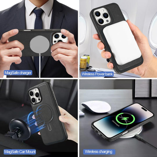 For iPhone 16ProMax 16 15 14 13 12 Leather Phone Case with Strong Magnetic, Anti-Fall for Magsafe Shockproof Business Hard Full Cover