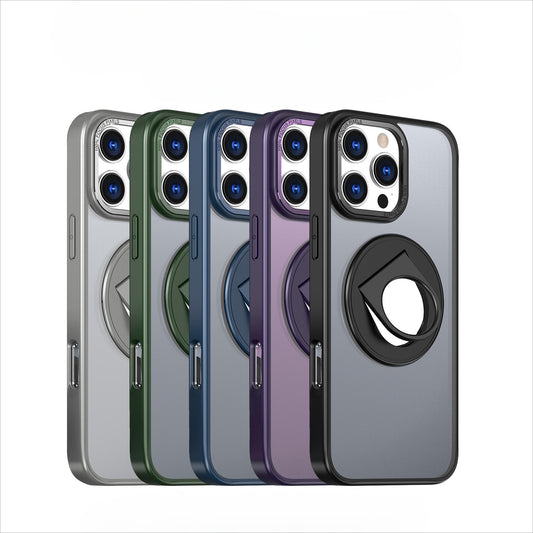 For iPhone 16ProMax 16 15 14 13 12 Pro Max Phone Case with Magnetic Kickstand, Matte Metal Camera Frame Plating Support Wireless Charging Hard Shockproof Full Cover