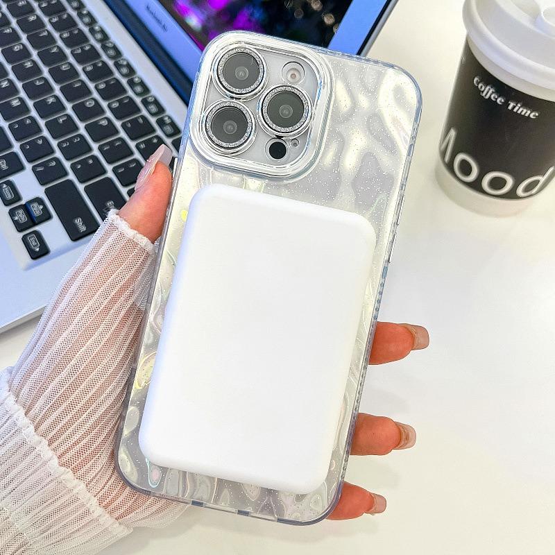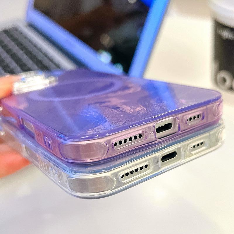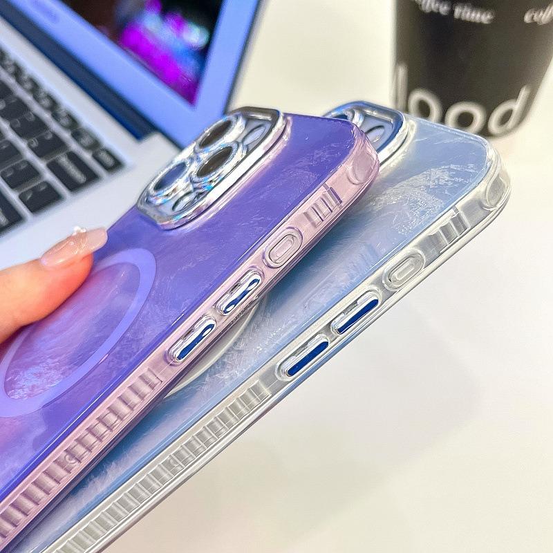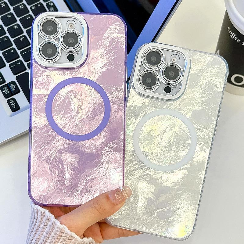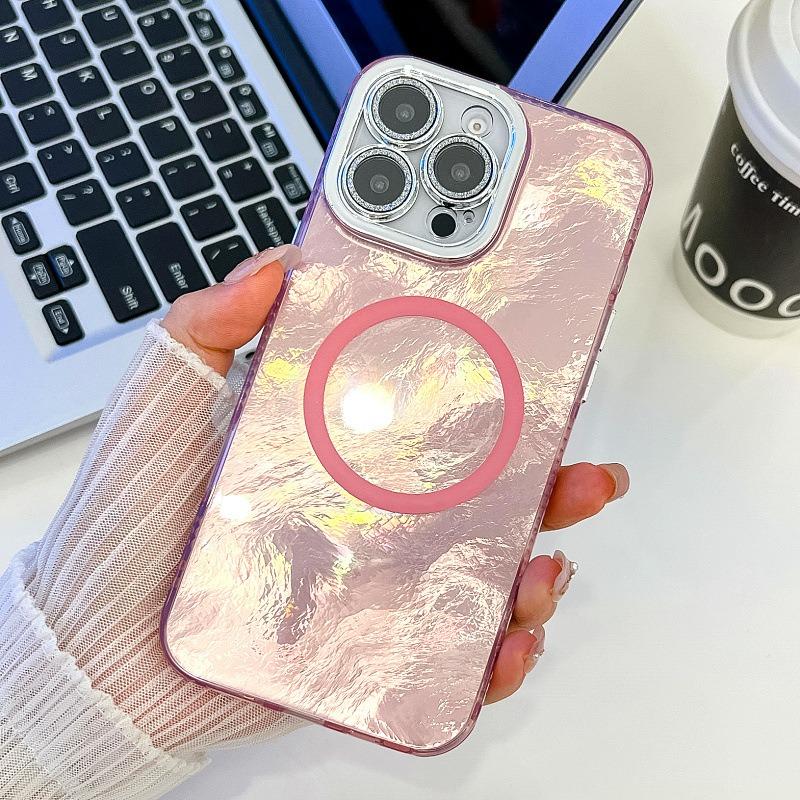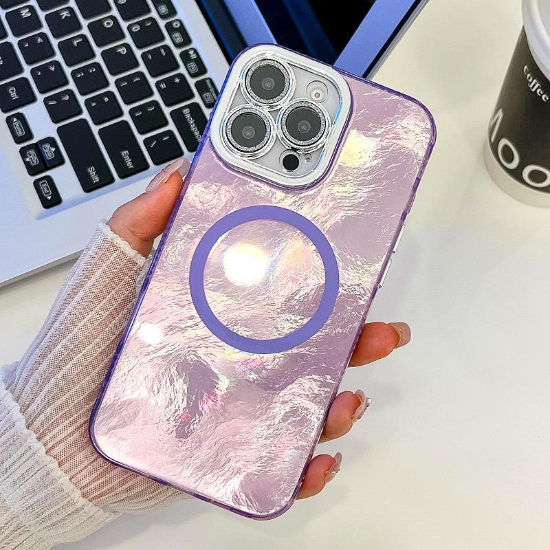 For iPhone 16ProMax 16 15 14 13 Phone Case, Electroplating Magnetic Laser Flow Silk Pattern Acrylic Slim With Glitter Len Protector, Protection Non-Yellowing Hard Cover