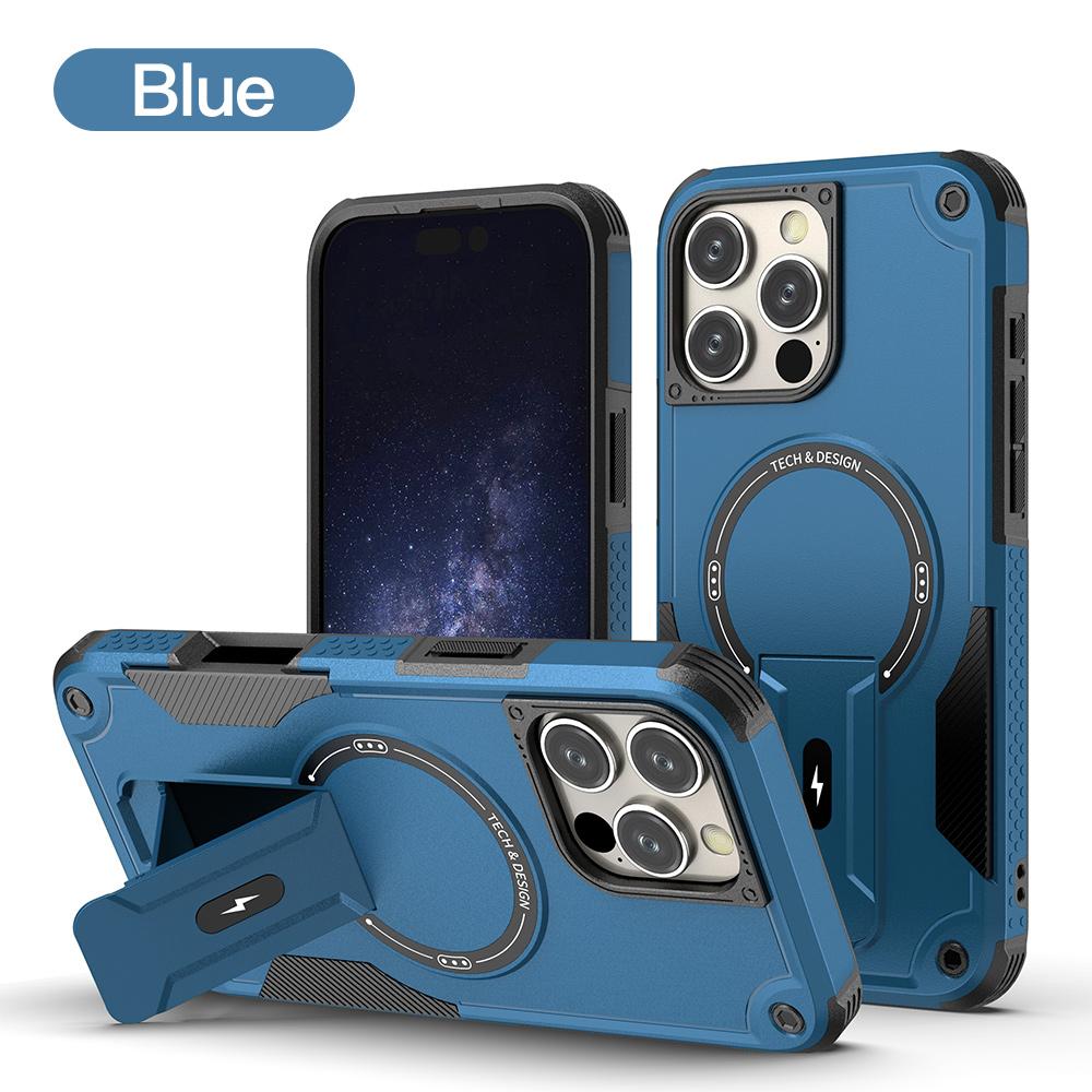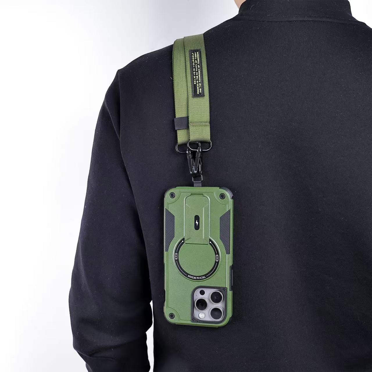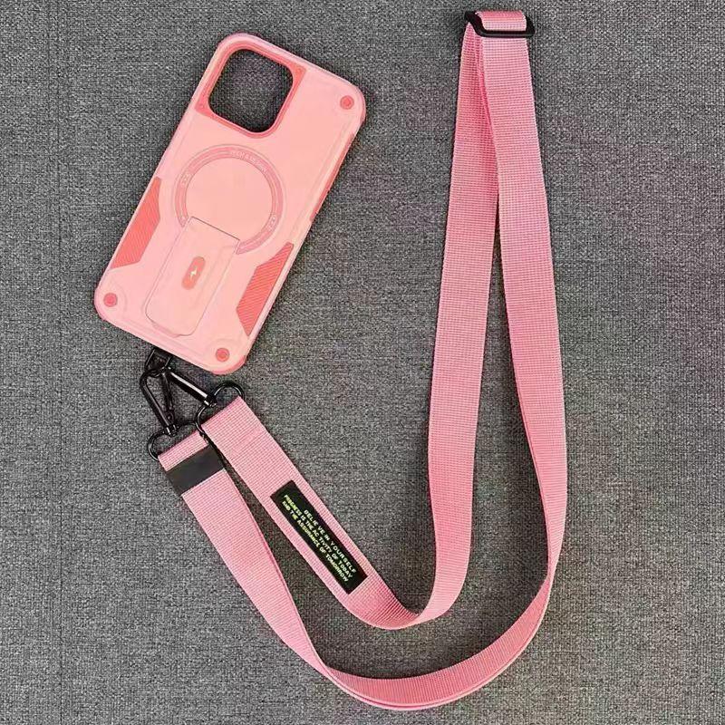 Mecha Style Drop Resistant Magnetic Stand With slingfor Phone Case iPhone 16 15 14 13 12 Pro Max, Slant The Straps Portable Kickstand PC Cover