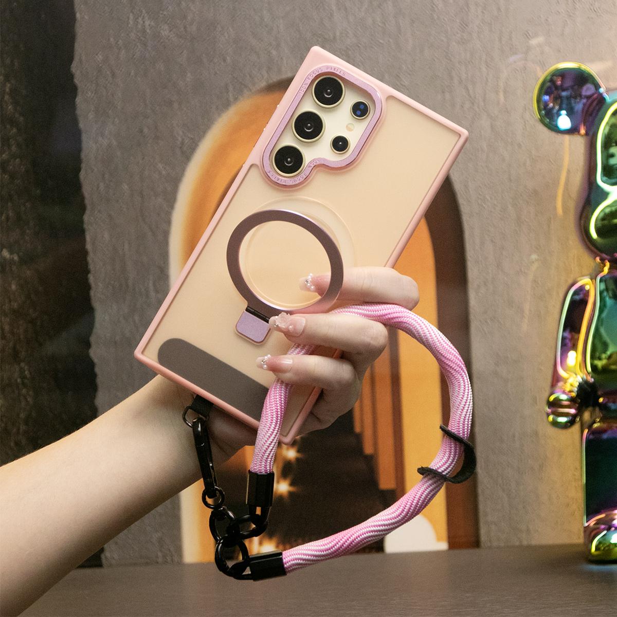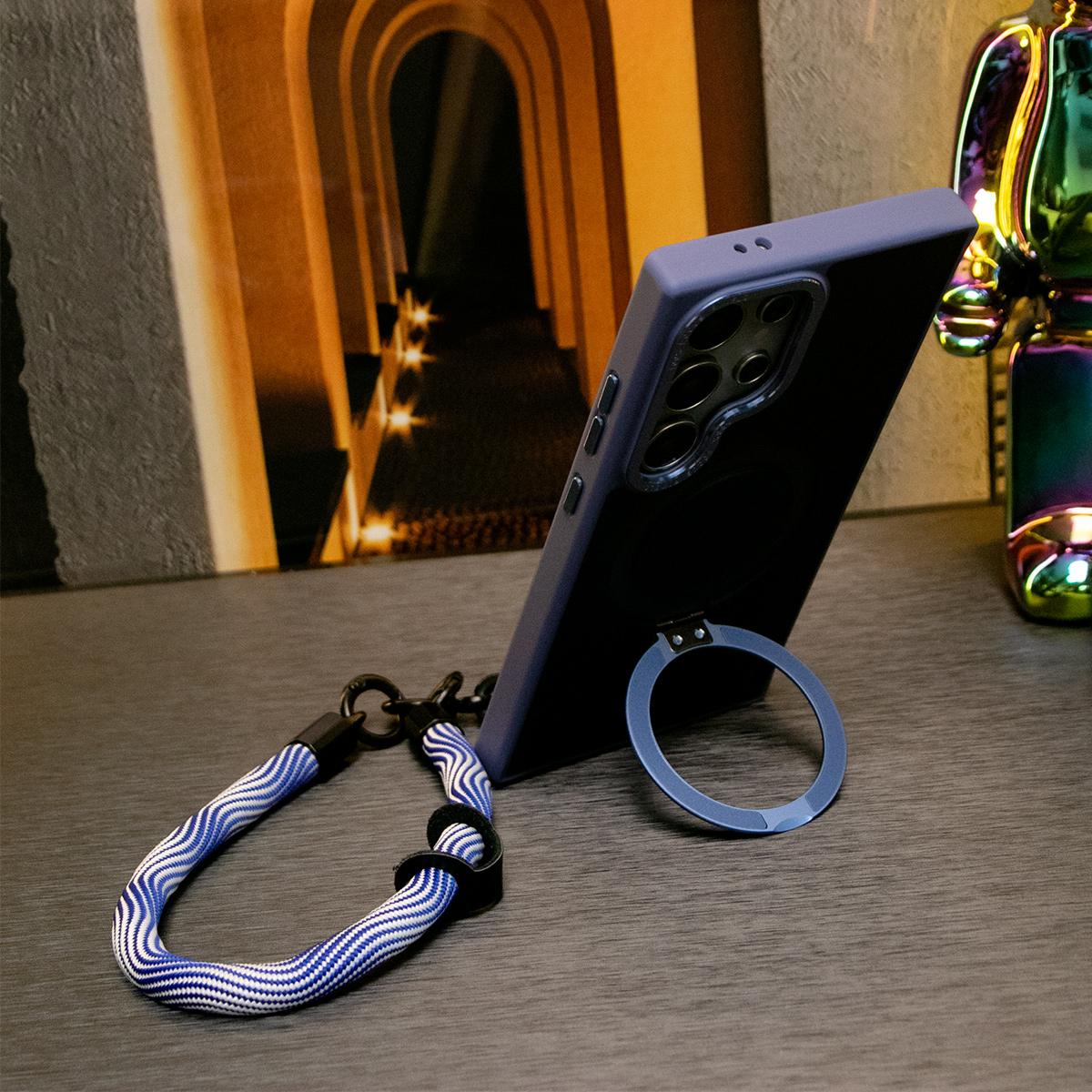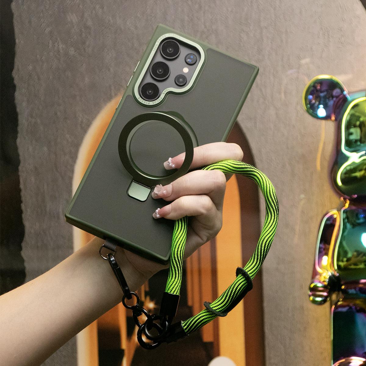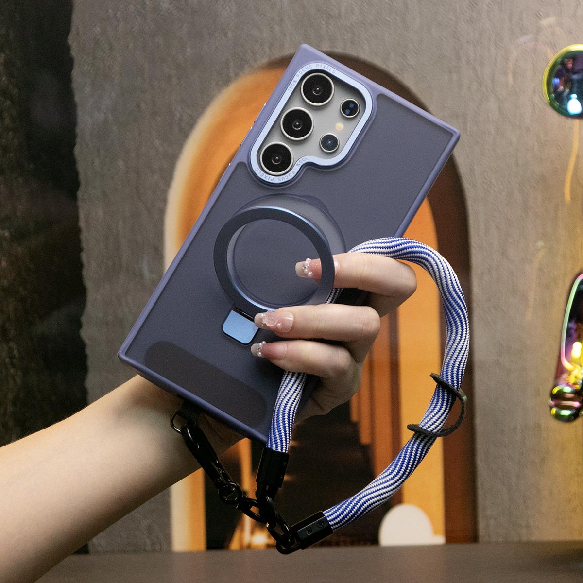 With Magnetic Invisible Stand [Tempered Glass Camera & Screen Protector] [Compatible with MagSafe] [Not Yellowing] Shockproof Slim With10mm Wave Multifunctional Climbing Rope For Samsung S24 S23 Plus Ultra Phone Case