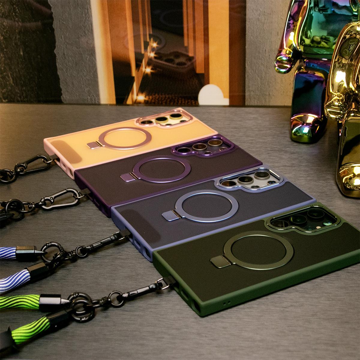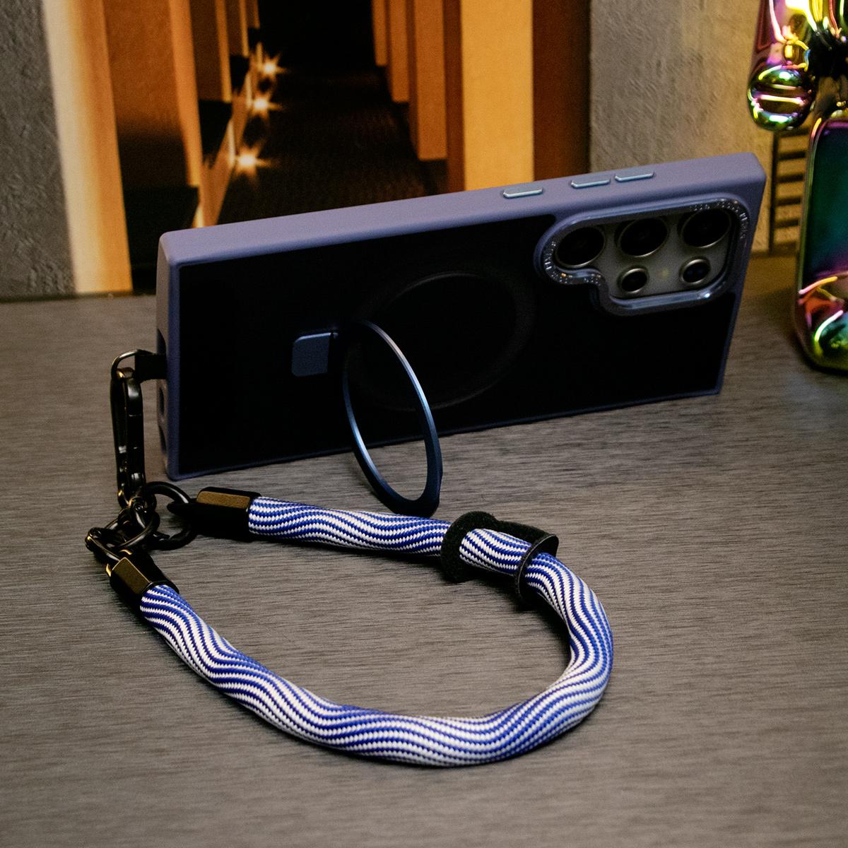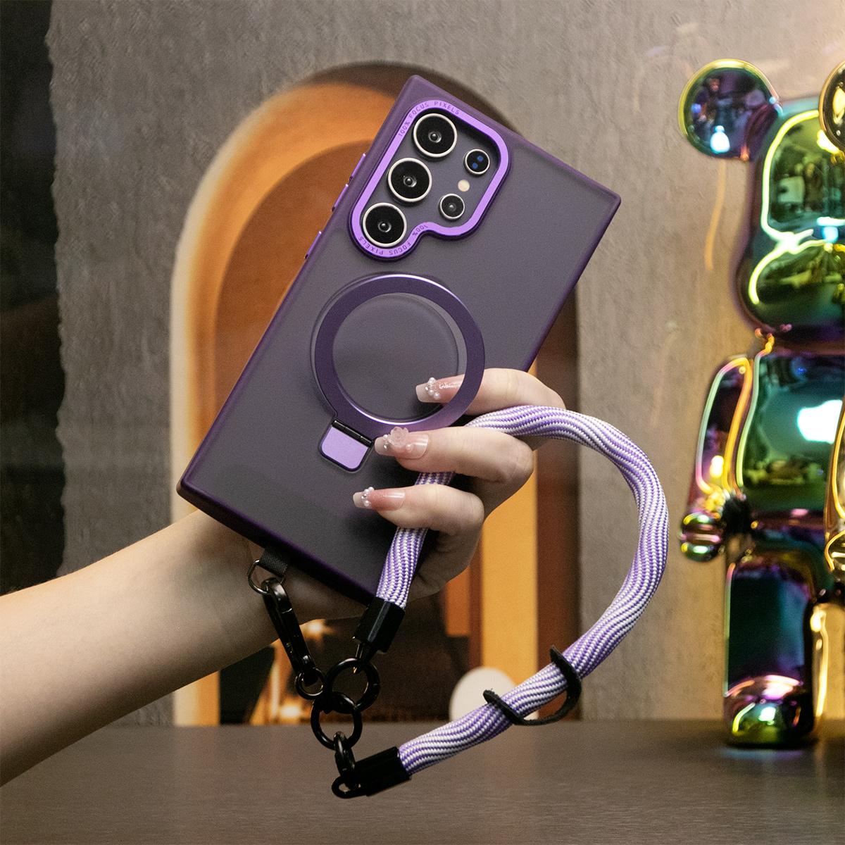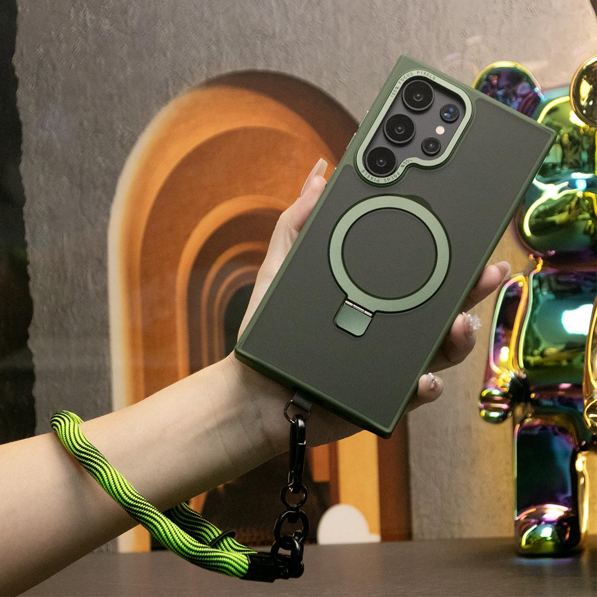 With Magnetic Invisible Stand [Tempered Glass Camera & Screen Protector] [Compatible with MagSafe] [Not Yellowing] Shockproof Slim With10mm Wave Multifunctional Climbing Rope For Samsung S24 S23 Plus Ultra Phone Case