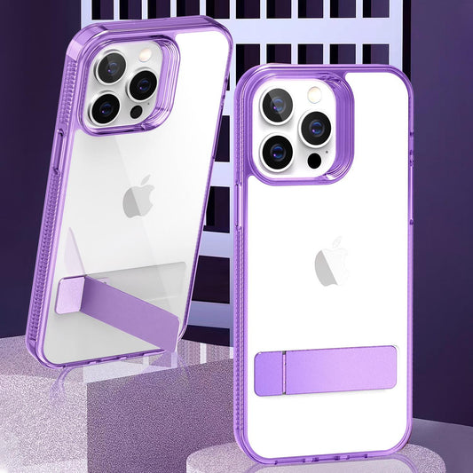 High Definition Transparent Anti-Fall Bumper Shockproof Clear Phone Case With Metal Simple Kickstand for iPhone 16ProMax 15 14 13 12 11 Hard Full Cover