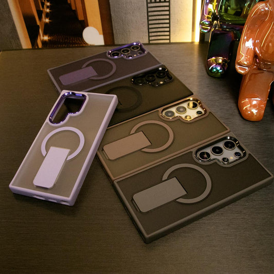 Luxury Matte Clear Stand Support Magnetic For Samsung S25Ultra S25+ S25 S24FE S24Ultra S24Plus S24 S23Ultra S23 [Compatible with MagSafe] [Not Yellowing] [Skin Feel]