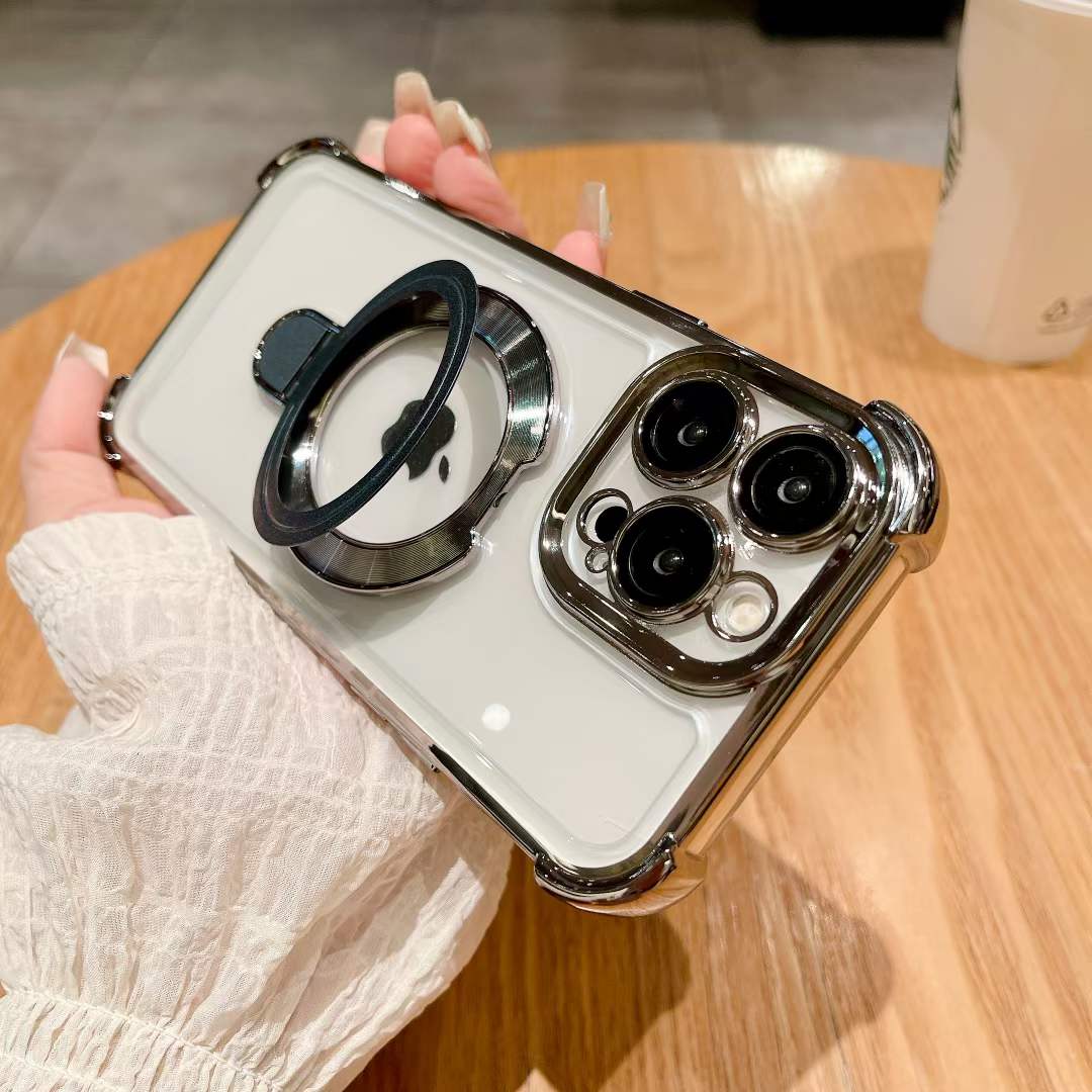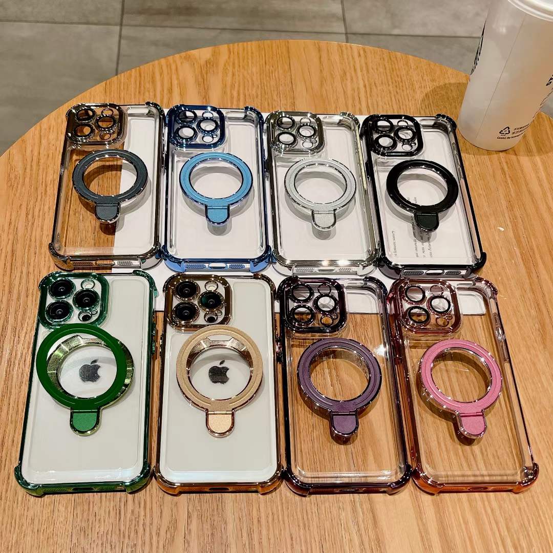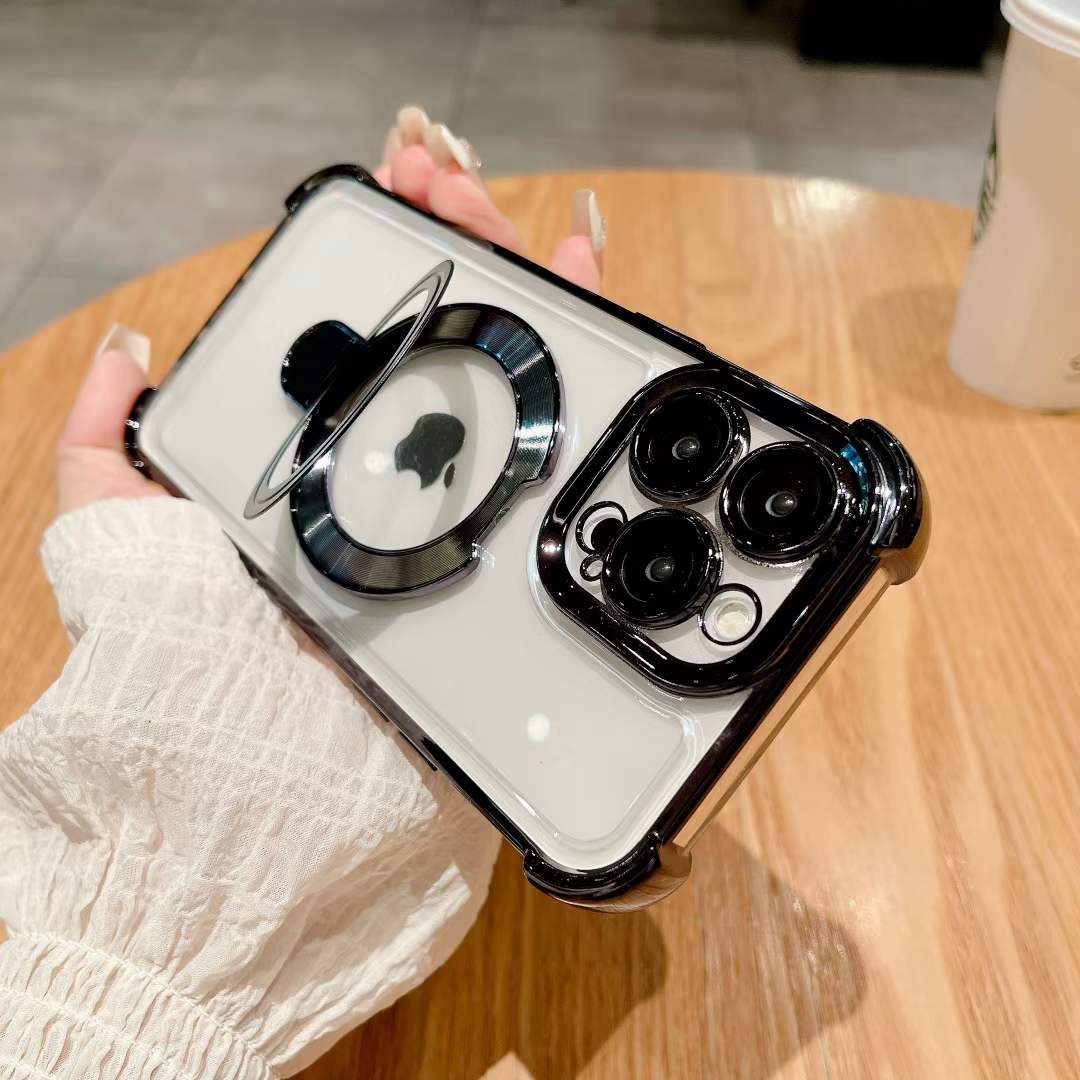 Für iPhone 16 15 14 13 12 Pro Max-Telefonhülle mit magnetischem Ständer, klares hochauflösendes stoßfestes Acryl mit vier Ecken für Magsafe Anti-Fall-Vollabdeckung