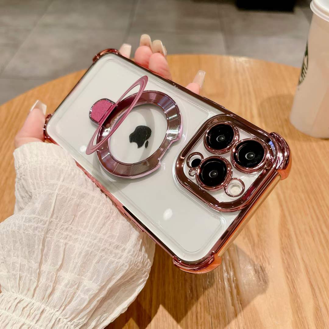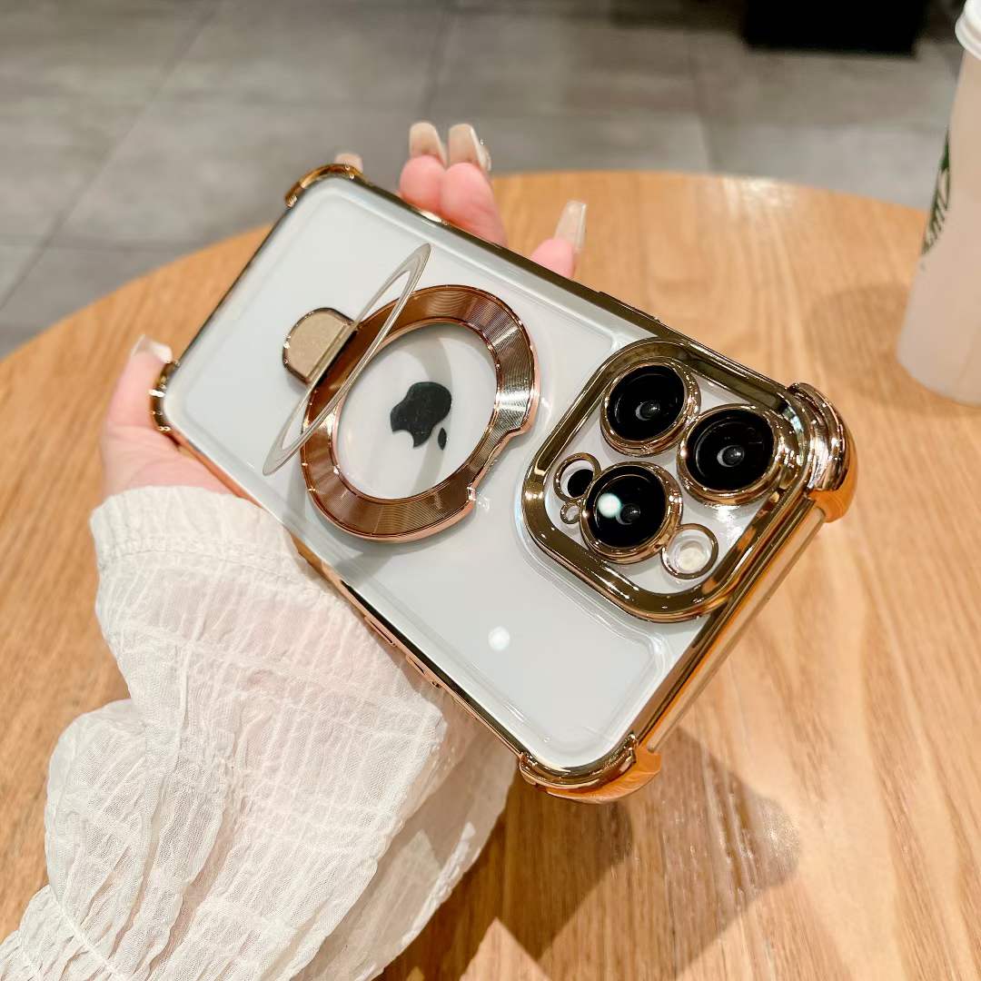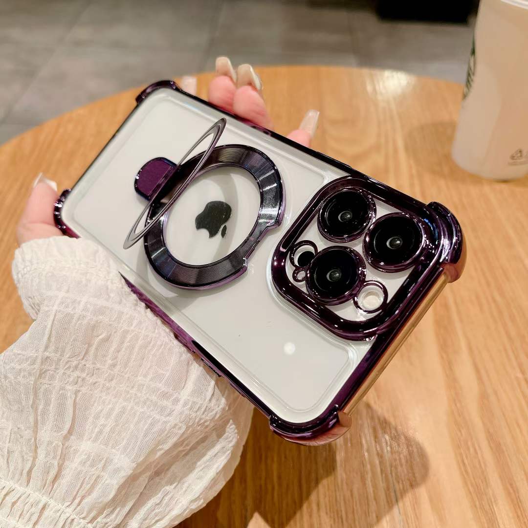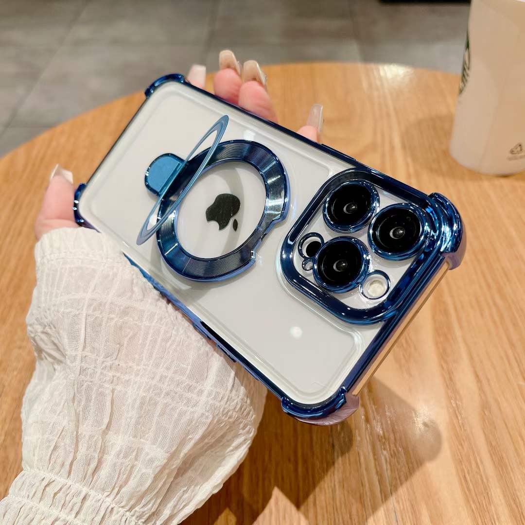 Für iPhone 16 15 14 13 12 Pro Max-Telefonhülle mit magnetischem Ständer, klares hochauflösendes stoßfestes Acryl mit vier Ecken für Magsafe Anti-Fall-Vollabdeckung