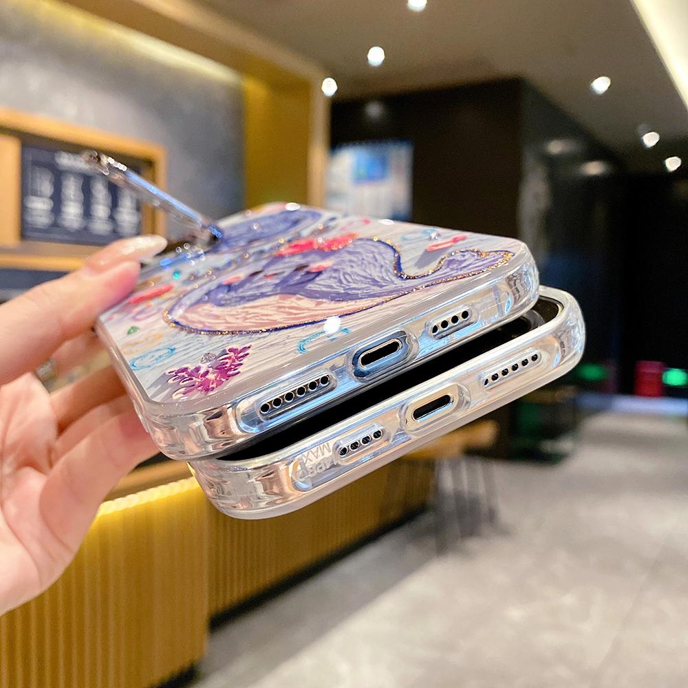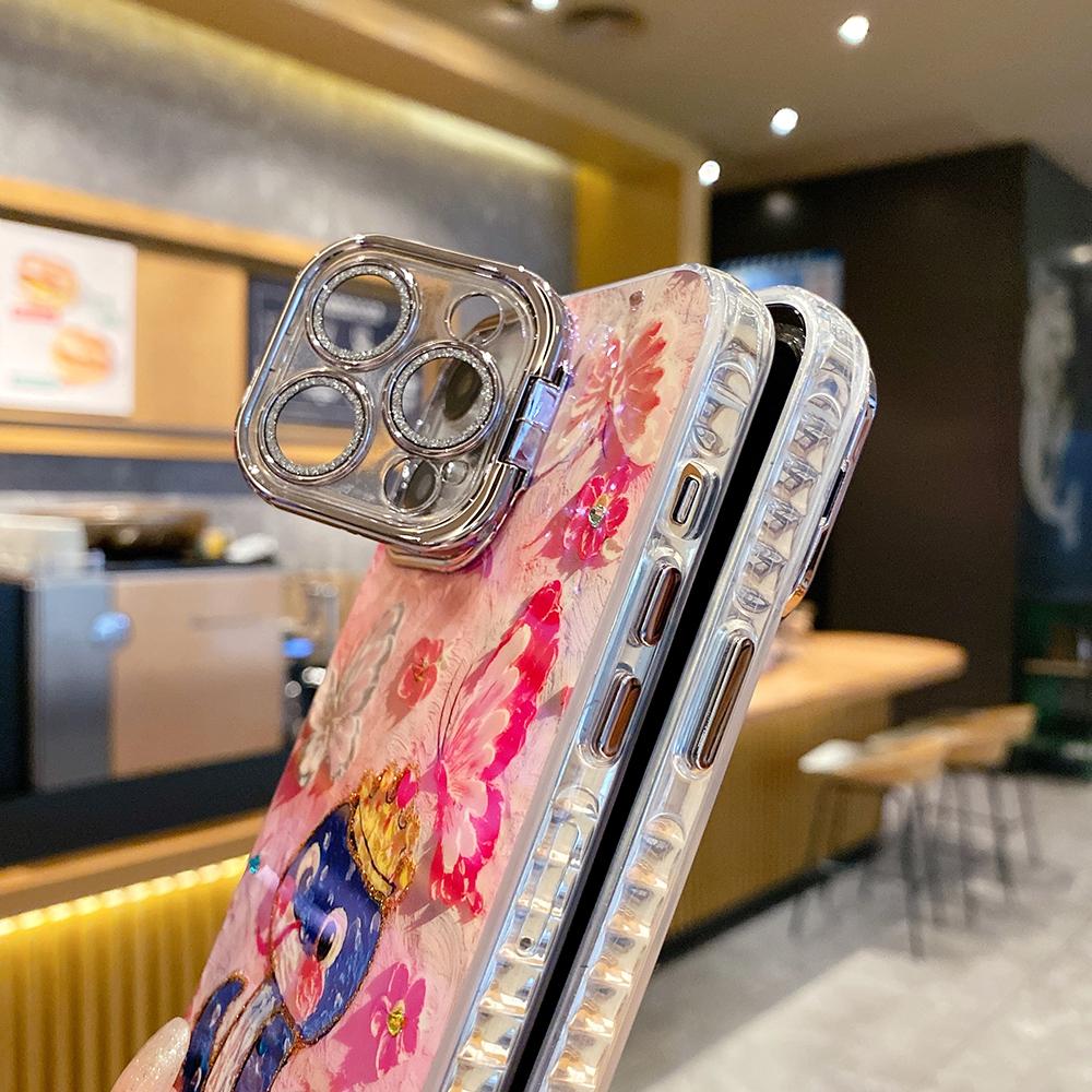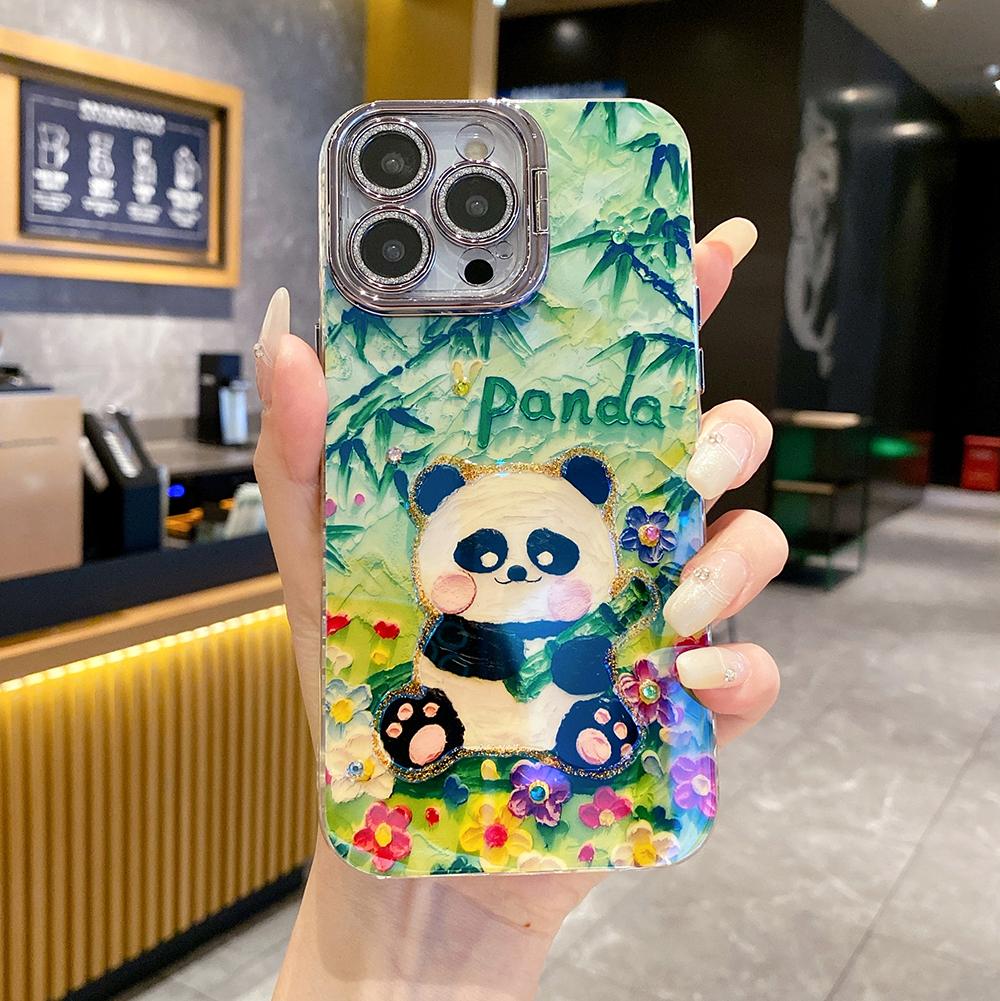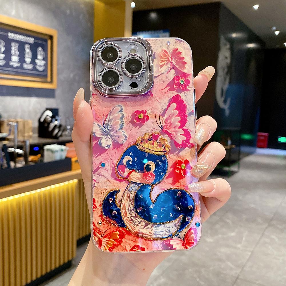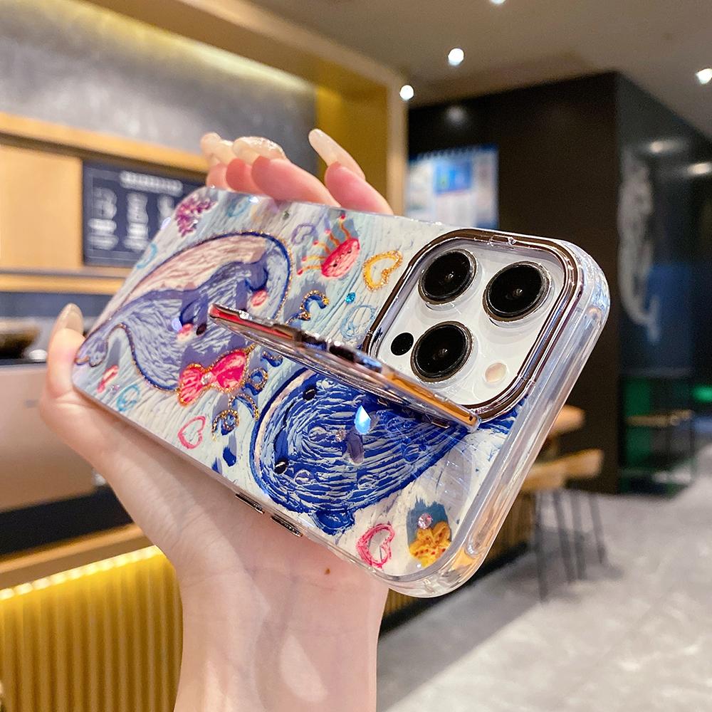 For iPhone 16ProMax 16 15 14 13 12 11 Phone Case with Diamond Camera Kickstand, Dolphin Whale Panda Elephant Snake Animal, Oil Painting Camera Frame Anti-drop Hard Shockproof Full Cover