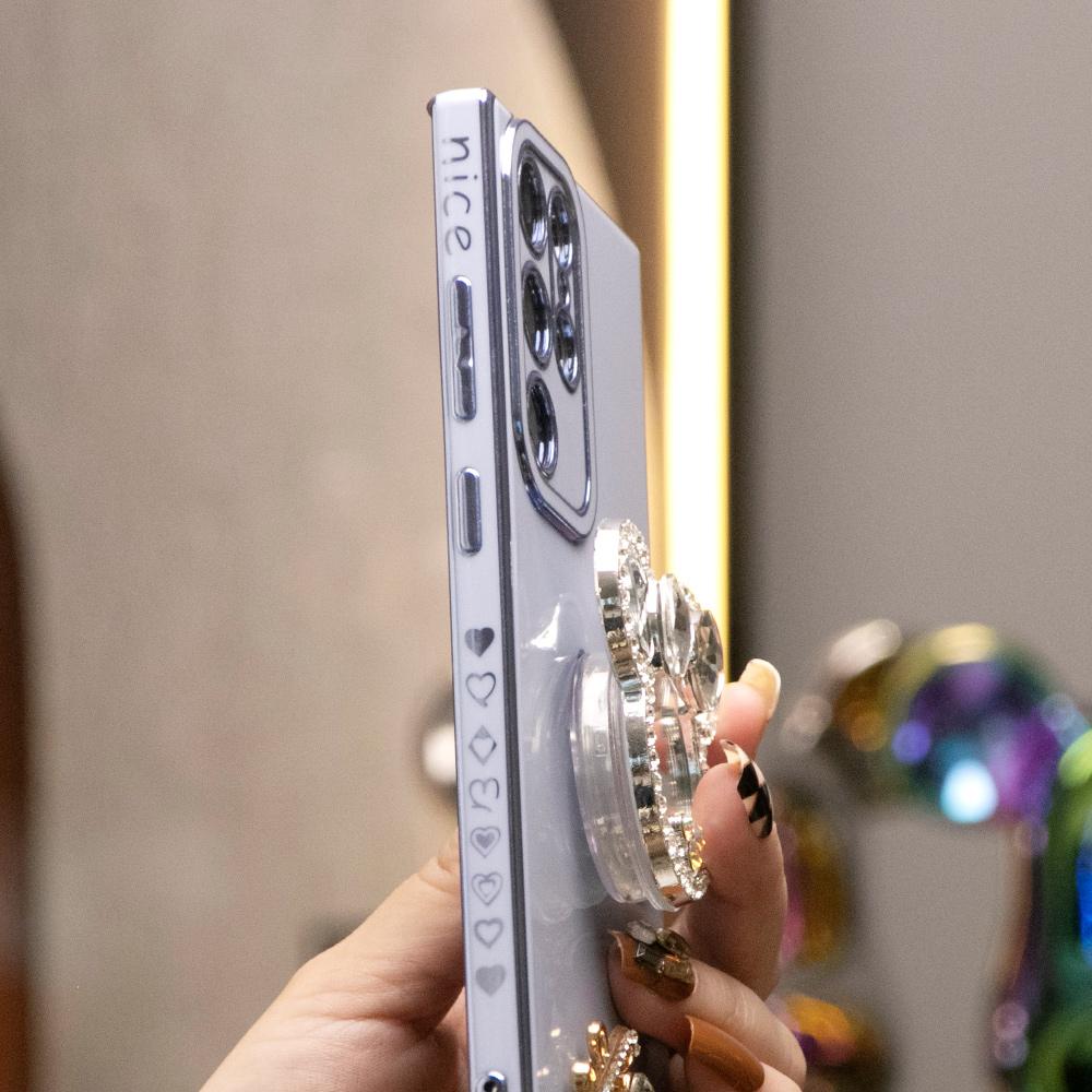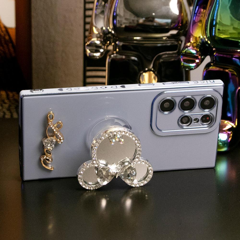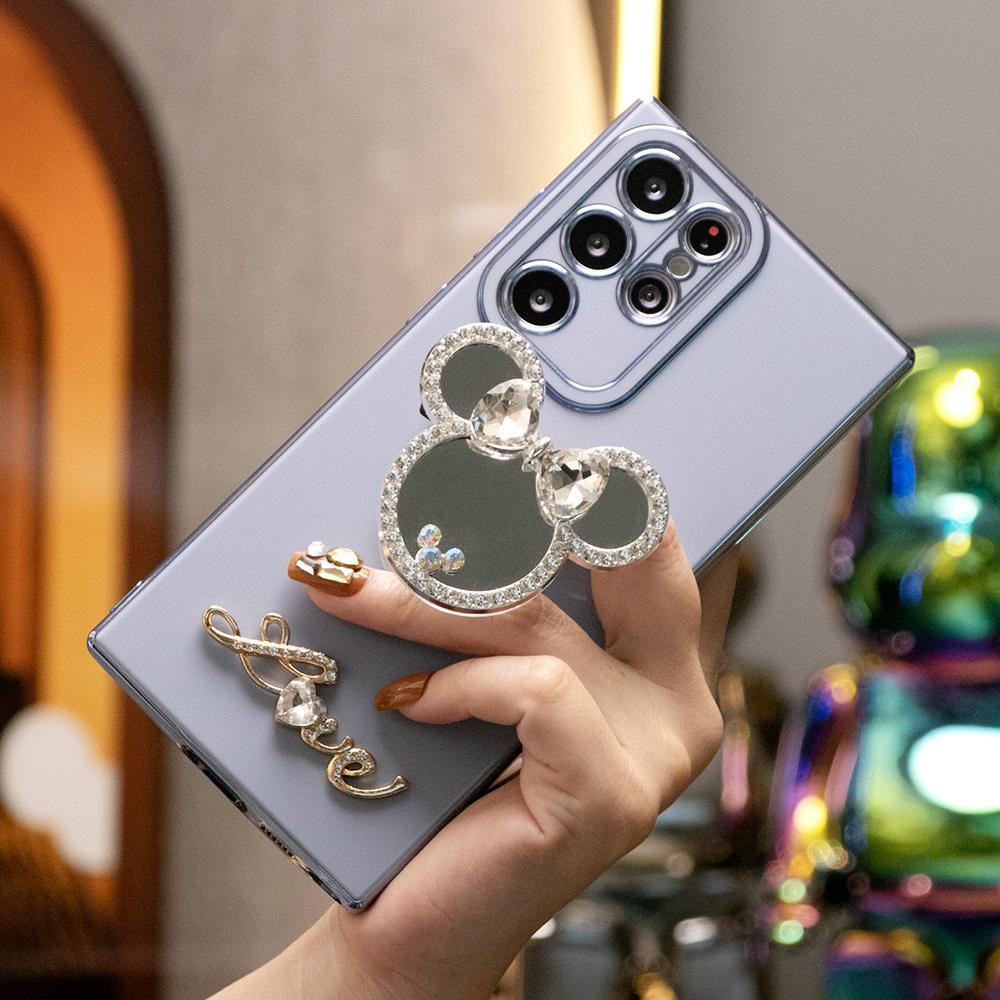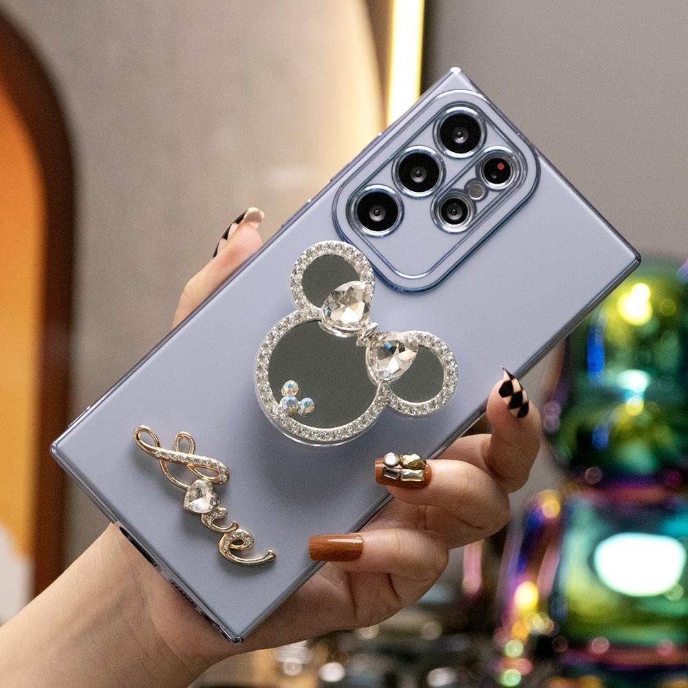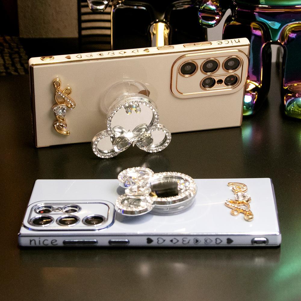 Für Samsung S23 S22 S21 A13 A14 A23 A24 A34 A52 A53 A54 Hülle, Mauskopf-Spiegel-Ständer, Liebesherz-Beschichtung, luxuriöse, elegante Hülle, Kameraschutz, stoßfeste PopStand-Softcover