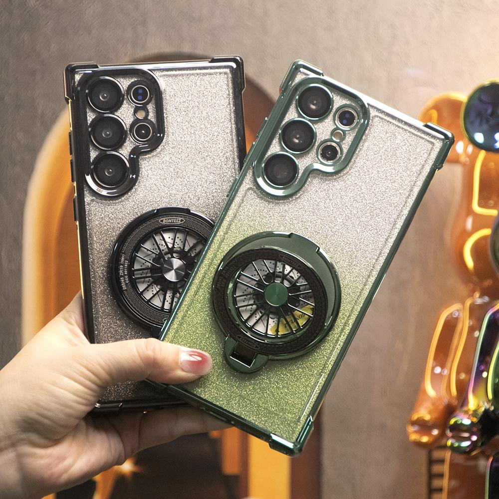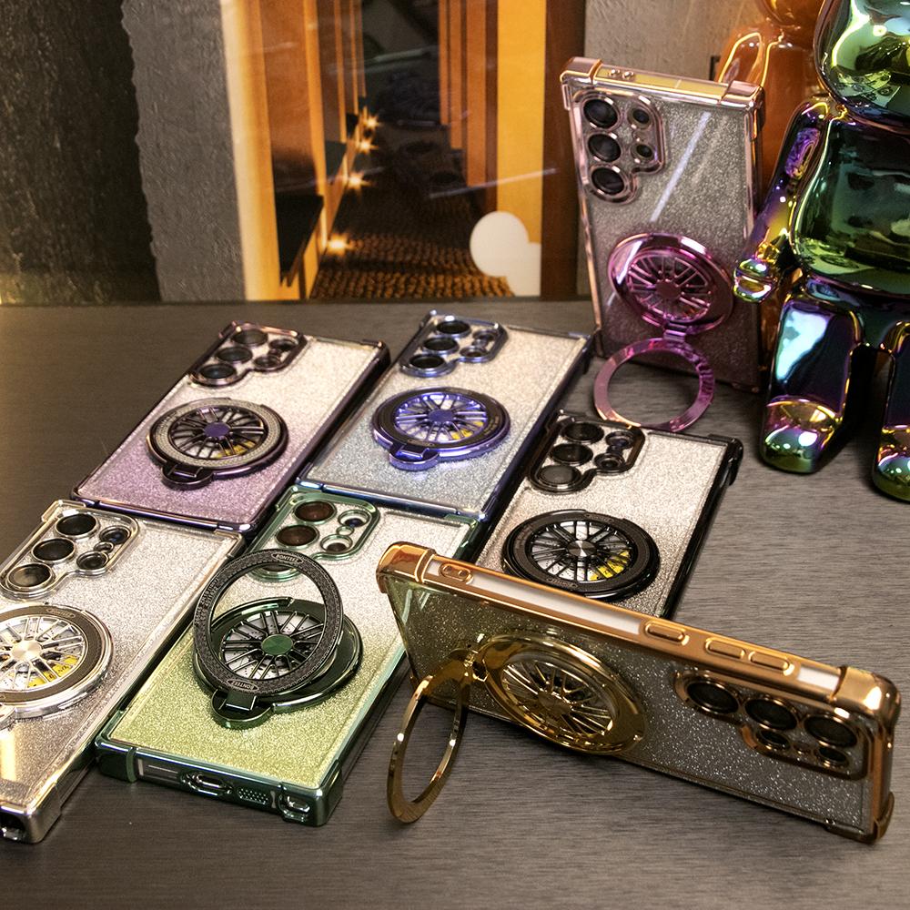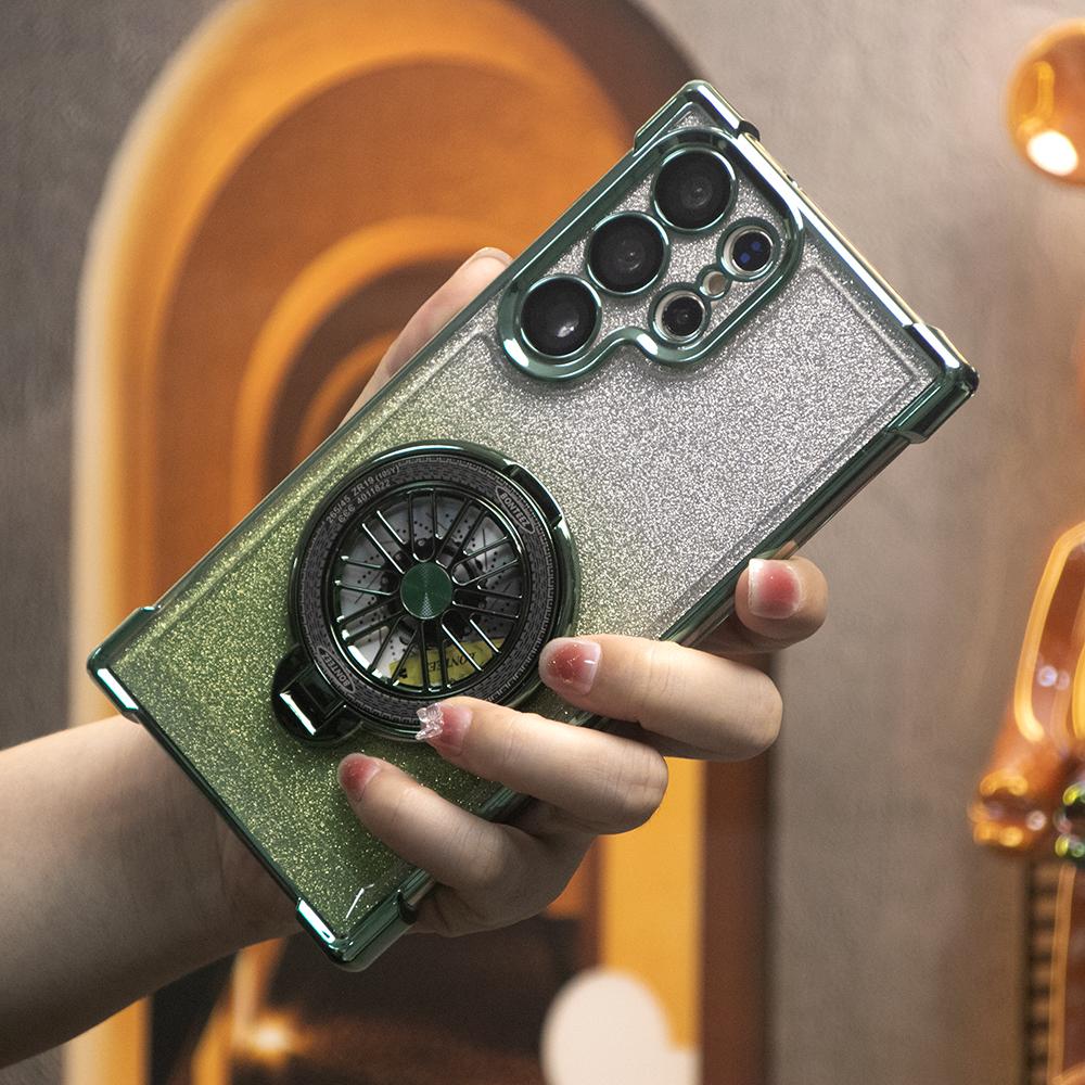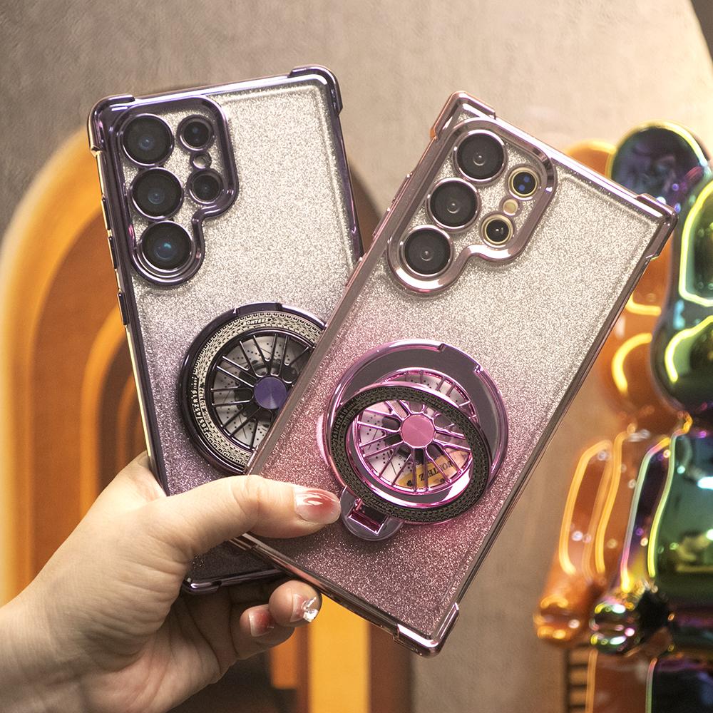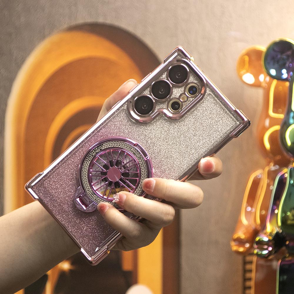 Gradient Plating Four Corners Shockproof Rotating Kickstand Case for Samsung S25Ultra S25 S24FE S24 S23 FE S22 Plus A53 A54 A55 Transparent Hard Acrylic Hybrid Bumper Armor Cover