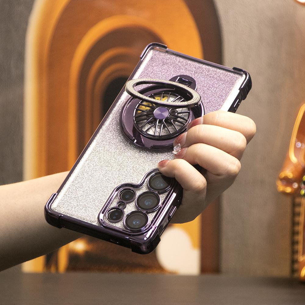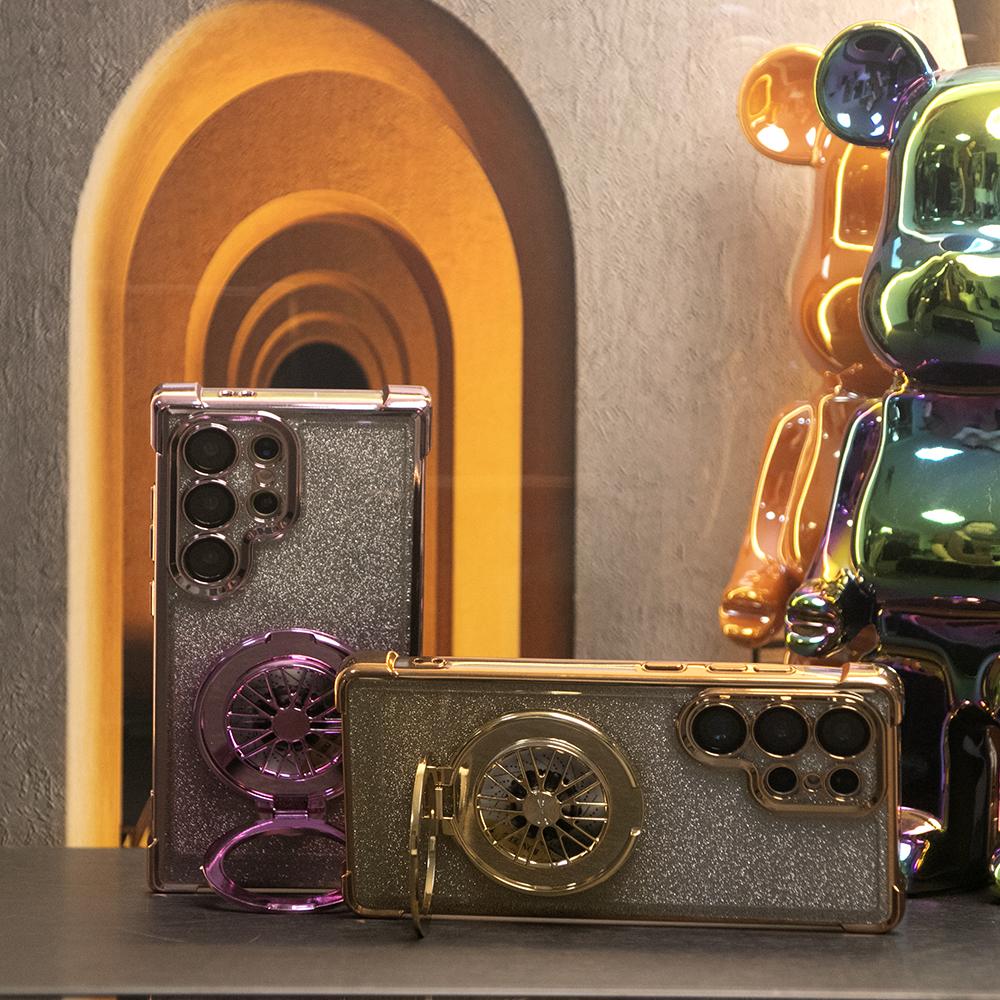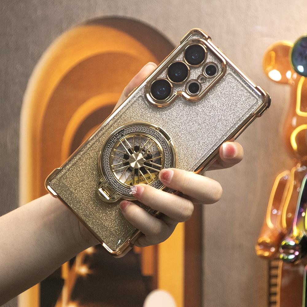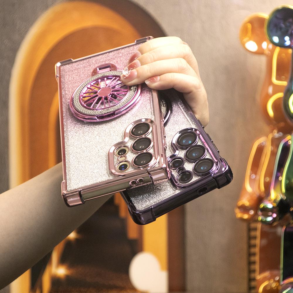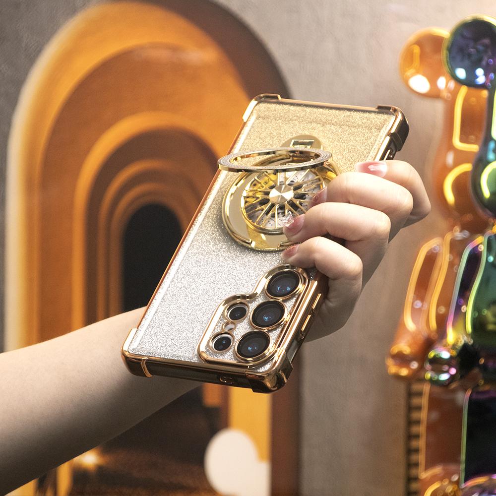 Gradient Plating Four Corners Shockproof Rotating Kickstand Case for Samsung S25Ultra S25 S24FE S24 S23 FE S22 Plus A53 A54 A55 Transparent Hard Acrylic Hybrid Bumper Armor Cover