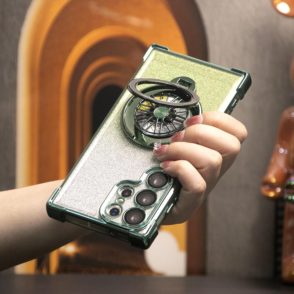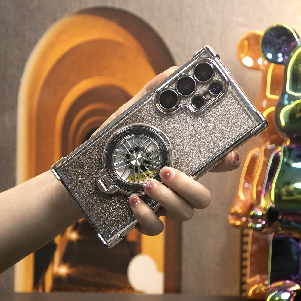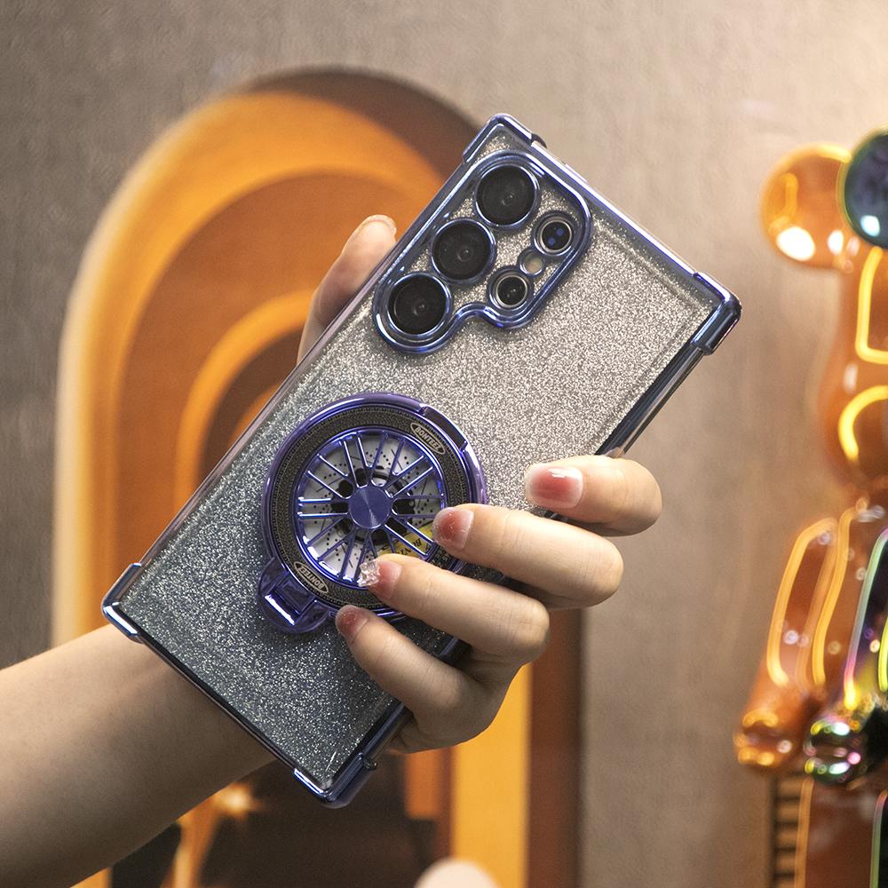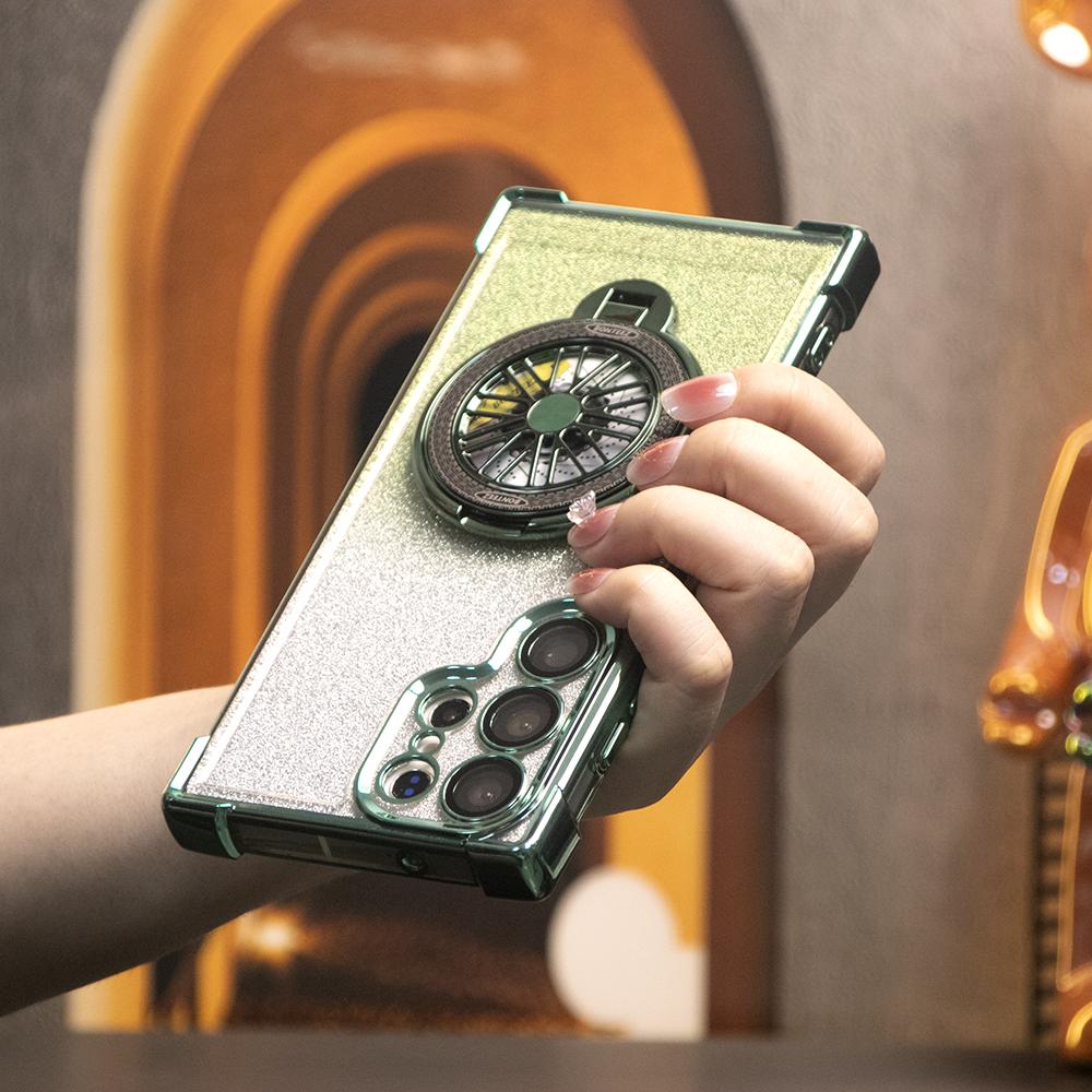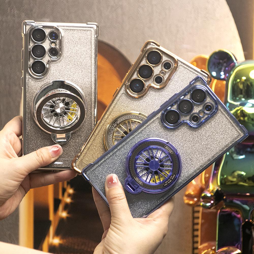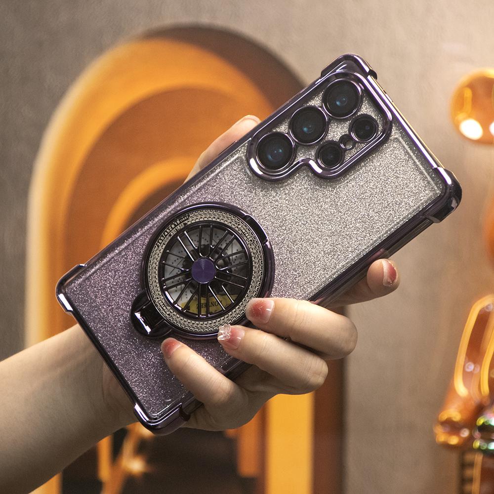 Gradient Plating Four Corners Shockproof Rotating Kickstand Case for Samsung S25Ultra S25 S24FE S24 S23 FE S22 Plus A53 A54 A55 Transparent Hard Acrylic Hybrid Bumper Armor Cover