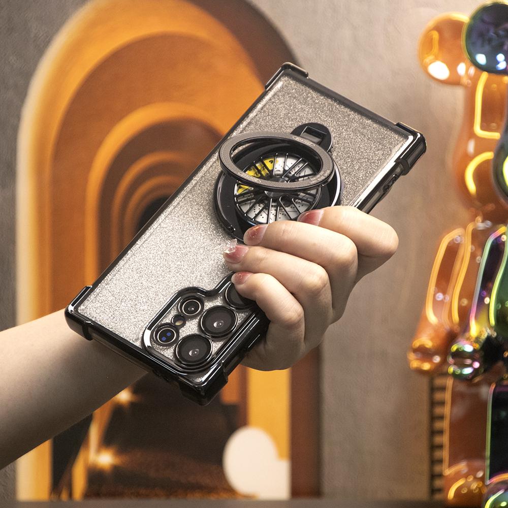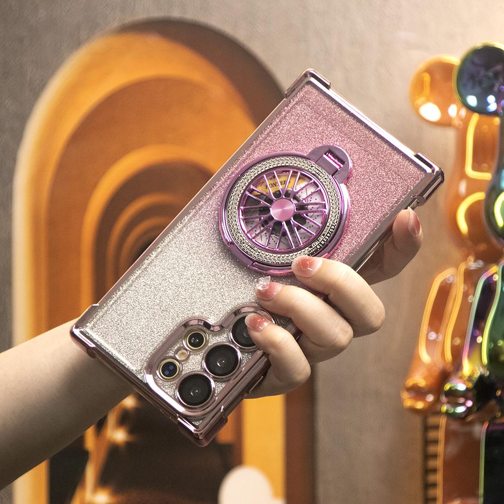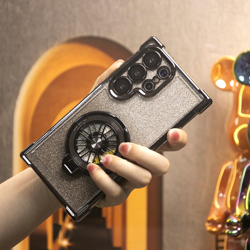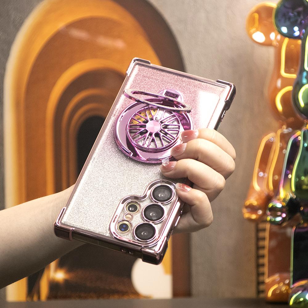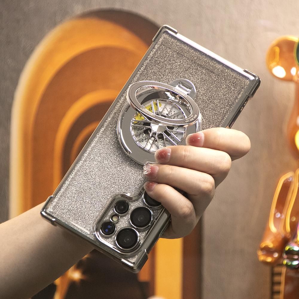 Gradient Plating Four Corners Shockproof Rotating Kickstand Case for Samsung S25Ultra S25 S24FE S24 S23 FE S22 Plus A53 A54 A55 Transparent Hard Acrylic Hybrid Bumper Armor Cover