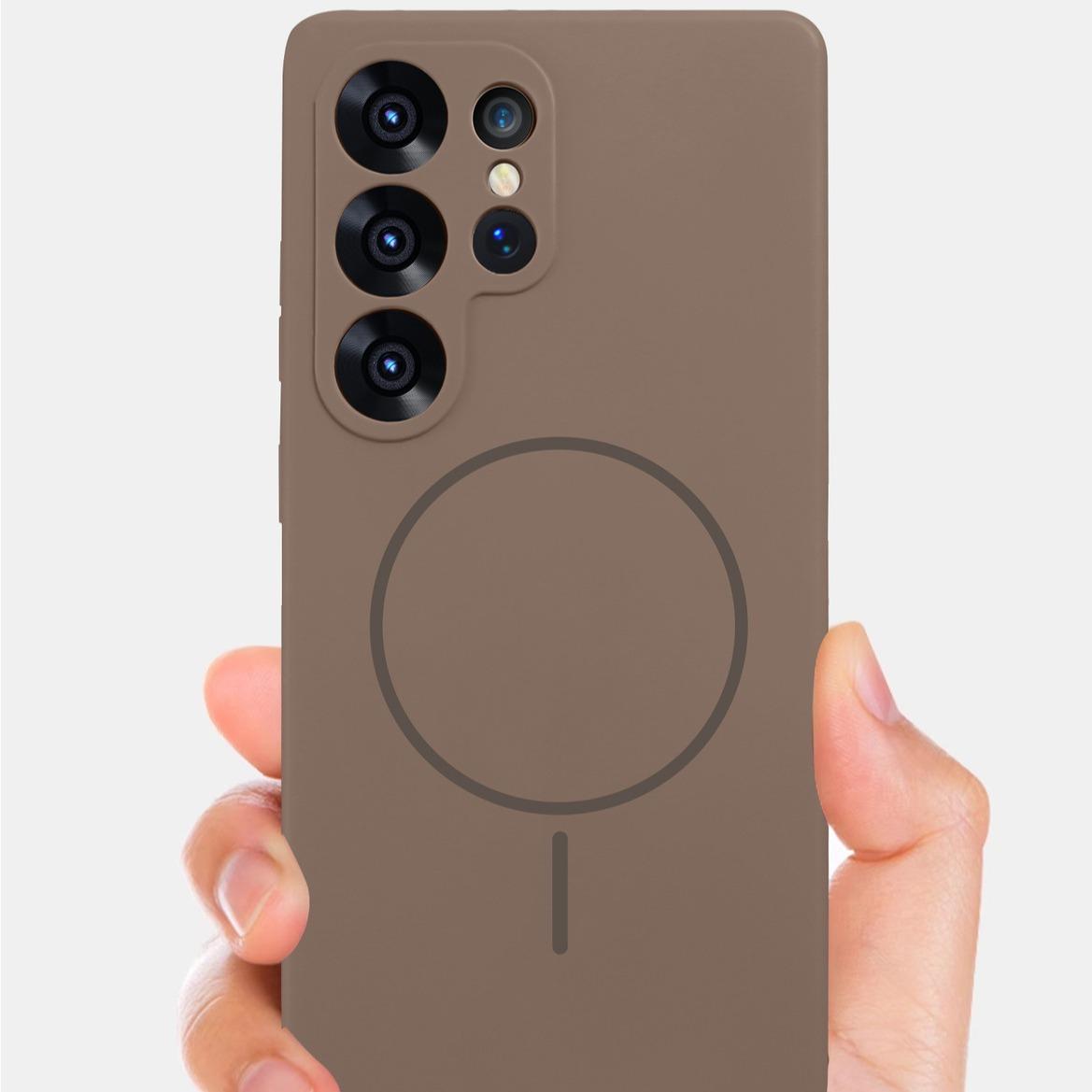 Liquid Silicone Fine Ring Strong Magnetic Precision Fingerprint-proof Phone Case For Samsung S25Ultra S25 S24 S23, Soft Skin Feel Shockproof Soft Full Cover With Microfiber Lining