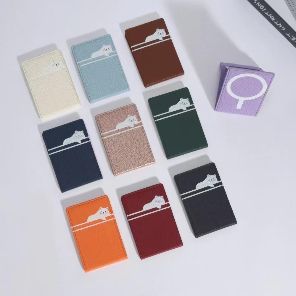 Strong Magnetic Folding Wallet Card Bag Holder Leather Case with Mirror for Magsafe for iPhone 16 15 14 13 Pro Max 12 Cat Magnetic Stand Cover