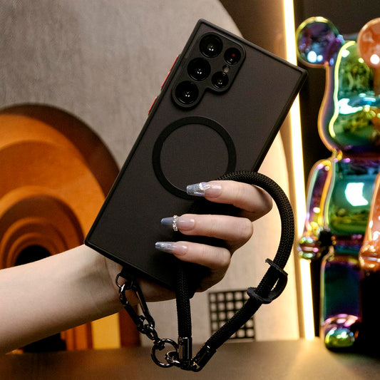 Luxury Matte Clear Support Magnetic With Woven Wristband For Samsung S24Ultra S24FE S23 S22 S21 Plus Ultra A55 A54 A35 A25 A15 Note 20 Ultra