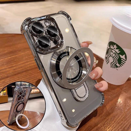 Glitter Plating Acrylic with Len Protector Phone Case with Magnetic Kickstand For iPhone 16ProMax 15 14 13 12 Four Corner Shockproof Hard Full Cover