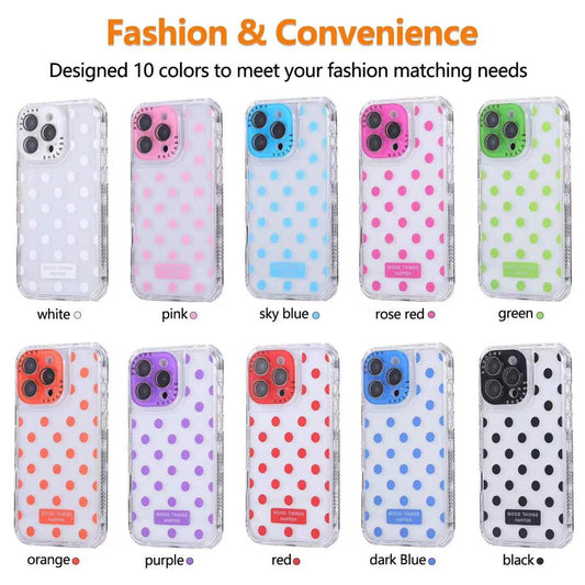 For iPhone 16ProMax 16 15 14 13 Phone Case, Colorful 3 in 1 Transparent Luxury Wave Point Acrylic Anti Fall, With Camera Protector Shockproof Clear Hard Full Cover