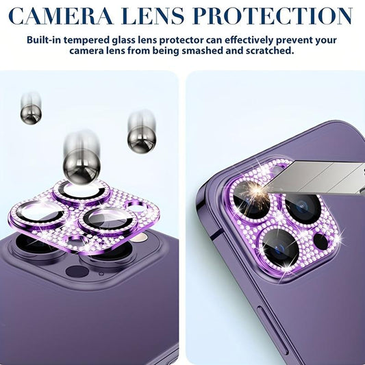 Metal Camera Lens Protector With Rhinestone, Scratchproof Protector For iPhone 16 15 14 13 12 Pro Max