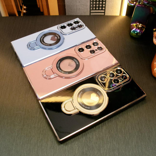 Luxury Love Heart Side Pattern Plating Phone Case With Magnetic Stand For Samsung A15 A25 A35 A55 A14 A24 A34 A54 A13 A23 A53 A12 A52 4G 5G