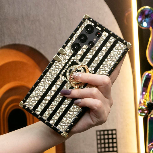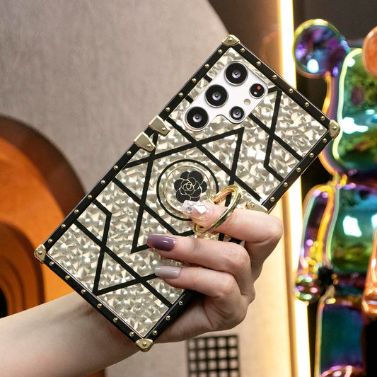 Luxury Glitter Retro Flower Pattern Cover For Samsung Galaxy S24 S21 S22 S23Ultra Fashion Geometric Square Case For Samsung A74 A73 A72 A71 A55 A54 A53 A52 A35 A34 A24 A25 A14 A15
