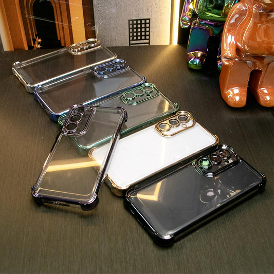 Luxury Plating Shockproof Clear Case for Samsung Galaxy A15 A25 A34 A35 A53 A54 A55 4G 5G Transparent Hard Acrylic Hybrid Bumper Armor Cover.