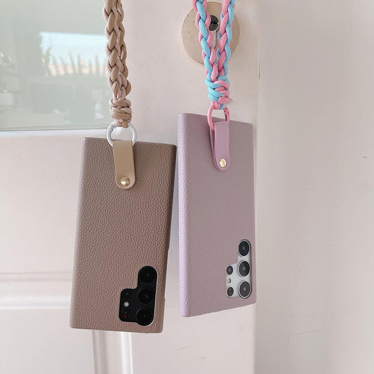 Luxury Wrist Strap Soft Leather Phone Case For Samsung S25 S25Plus S25Ultra S24 S24FE S24Plus S24Ultra Solid Color Cover