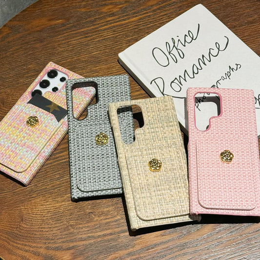 For Samsung S25Ultra S24 S23 S22 Case, Simple Slim Woven Pattern Fabrics Wallet Shockproof Card Slot Hard Full Cover