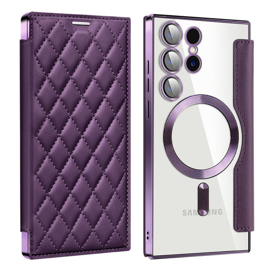 Magnetic Suction Flip Leather Case For Samsung S25 S24 S23 S22 for Magsafe Case High Leather Equipped With Lens Film Case